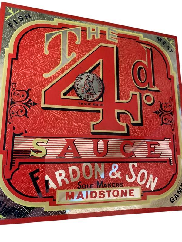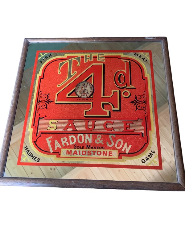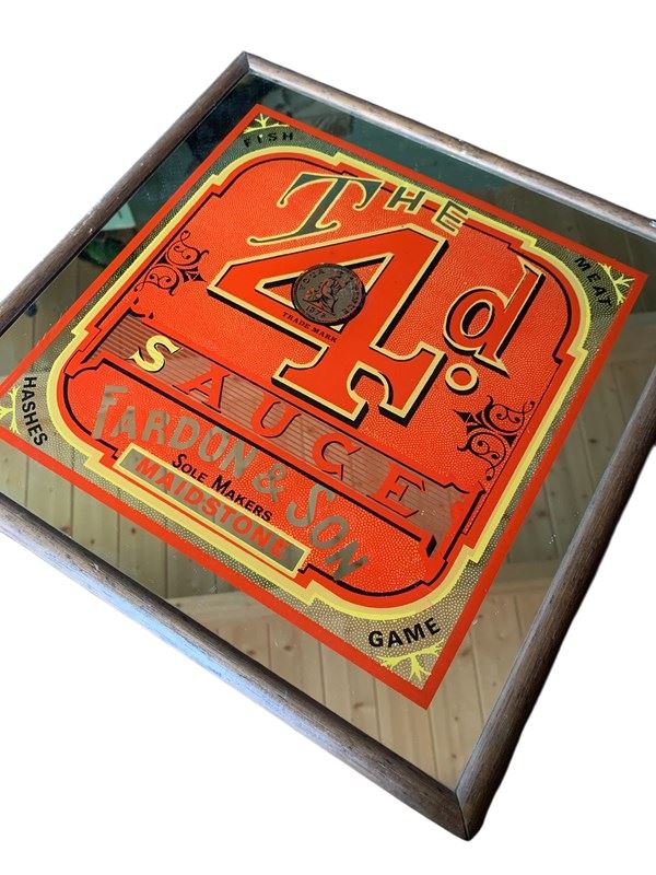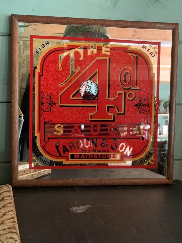 A good original advertising mirror for 4D sauce - Maidstone, retaining its decorative colours, and original frame and back, circa 1960, ideal for a mid century themed kitchen.