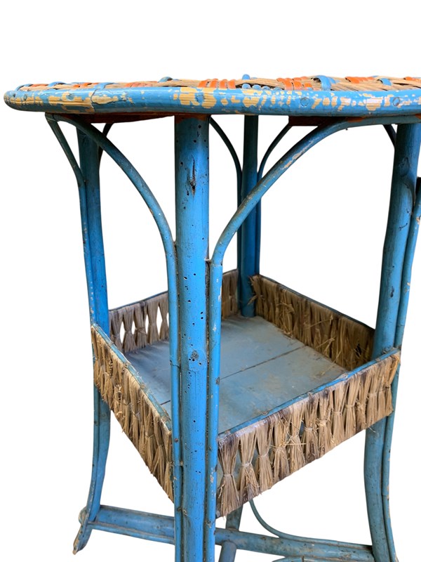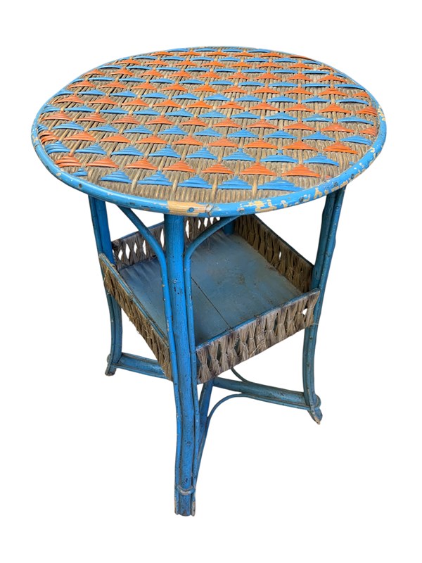 Very pretty French late 19th Century cane/rattan 2 colour lamp table.