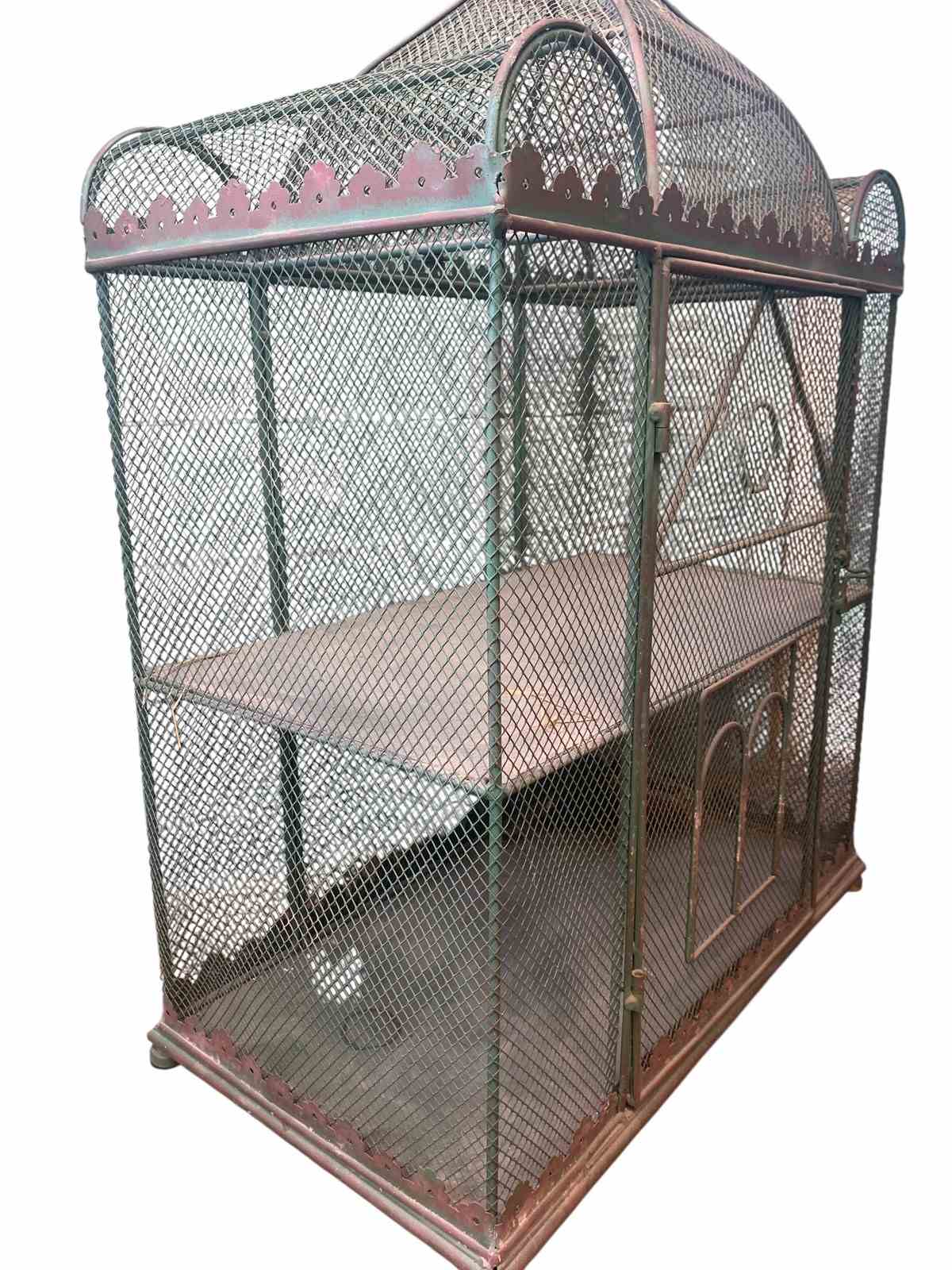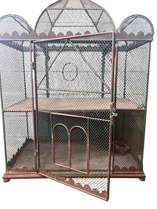A 19th Century French architectural birdcage, of painted metal construction, with remnants of original green paint.