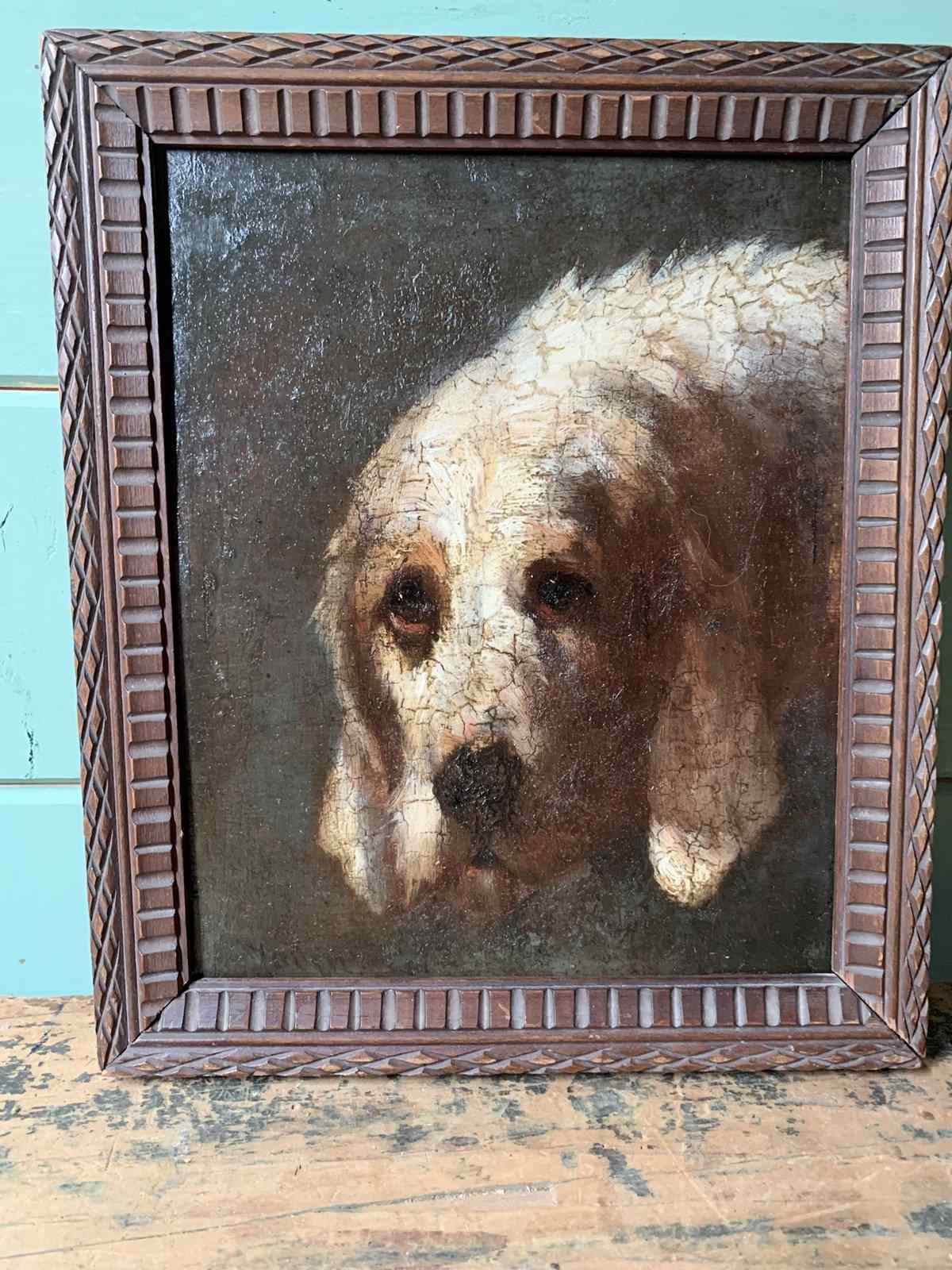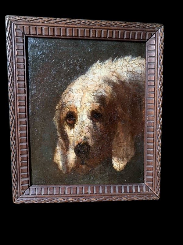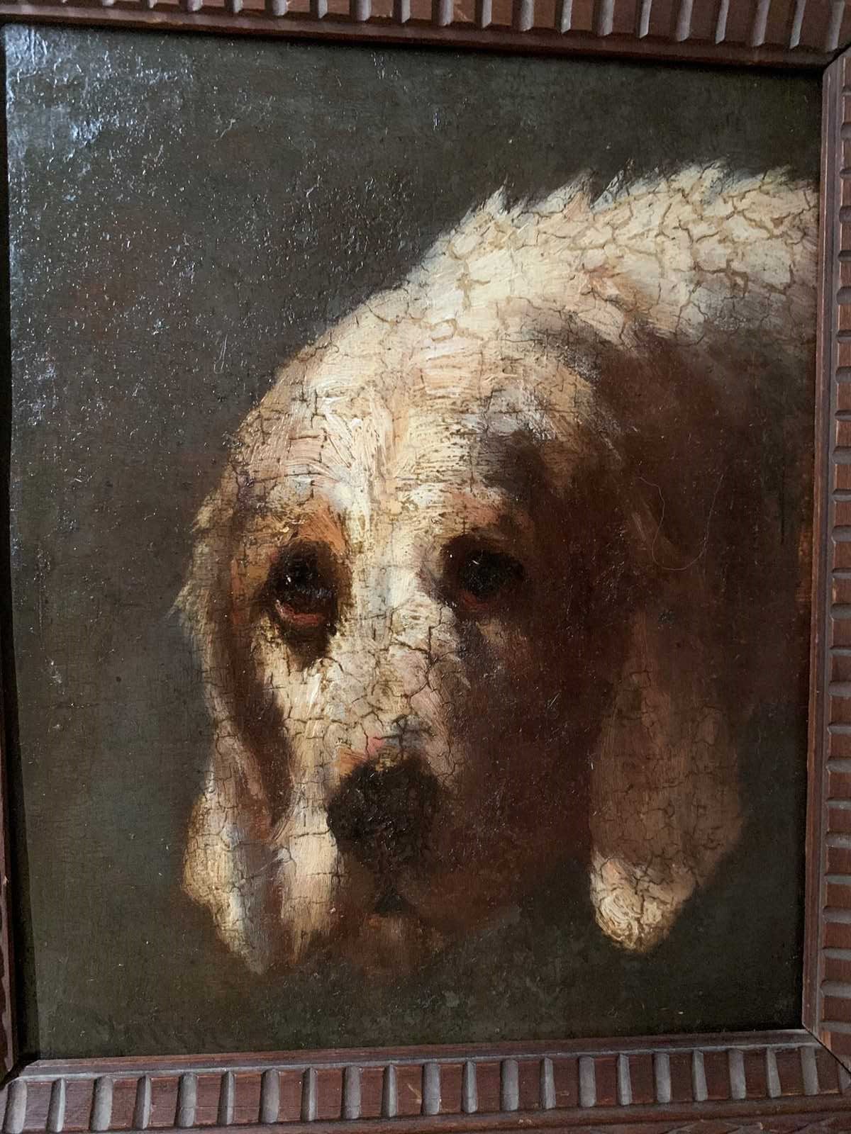 Antique Oil On Panel - Portrait Of A Hound