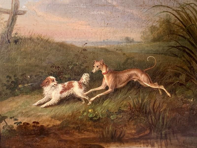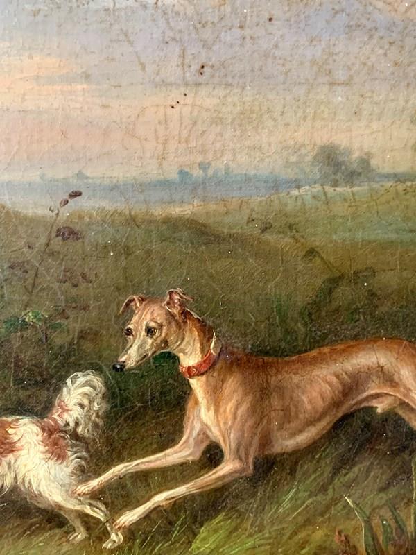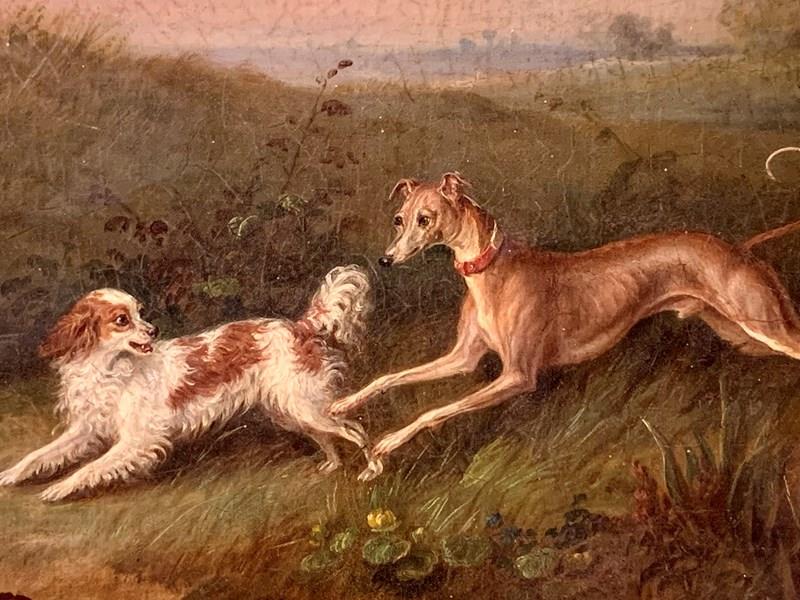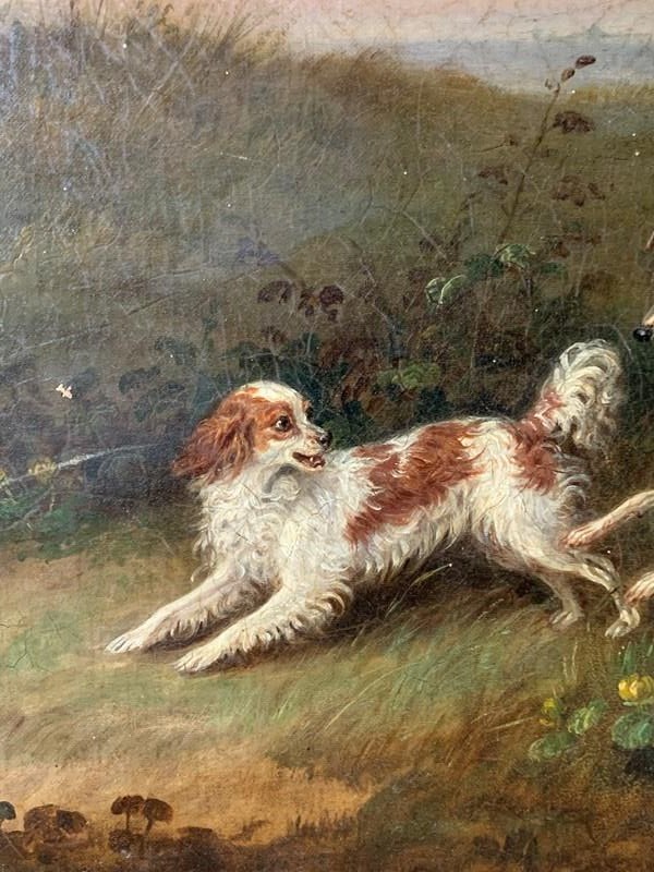 Dogs In A Landscape - 19Thc Oil On Canvas