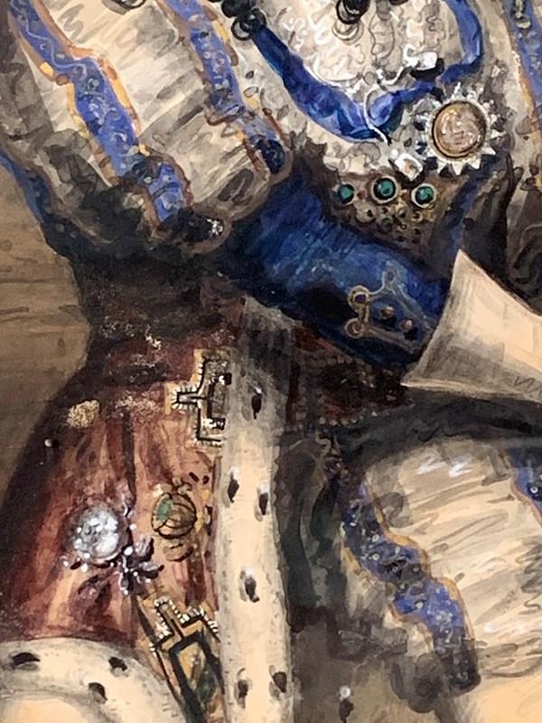 His attire is sumptuous and the detailing quite remarkable.