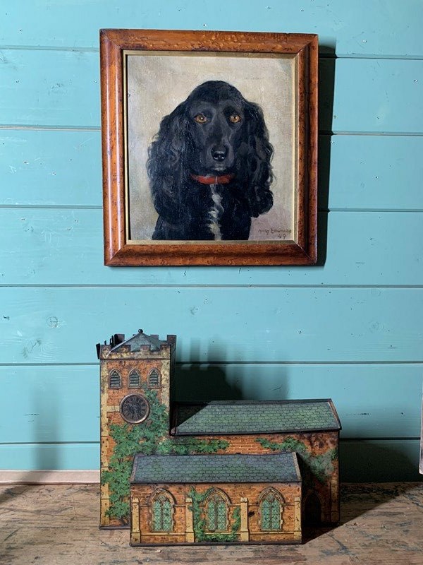 Mid Century Oil Portrait Of A Black Spaniel