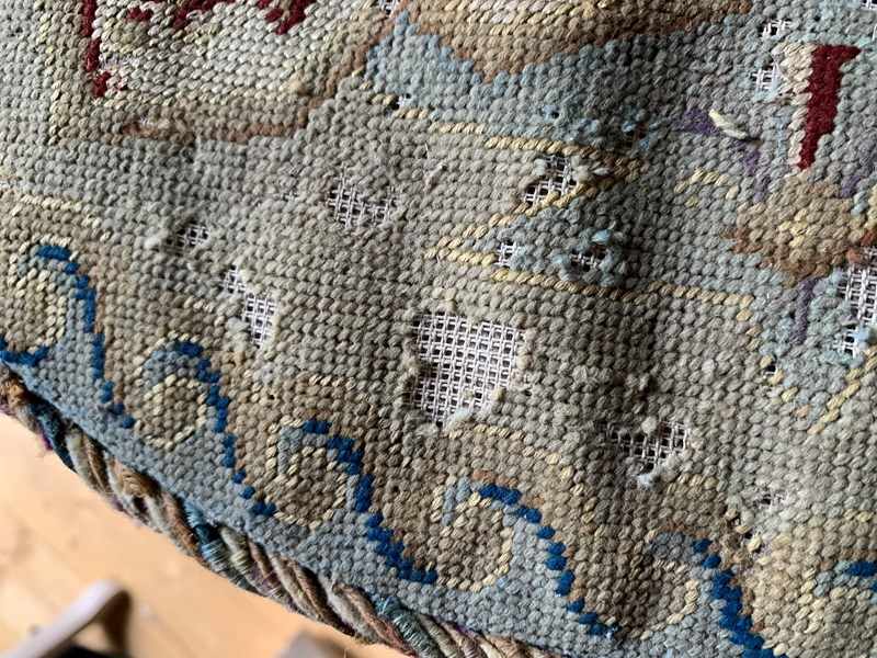 Wear to the paint work and to the tapestry only enhances its charm, and this versatile little side table could be placed anywhere in the home.