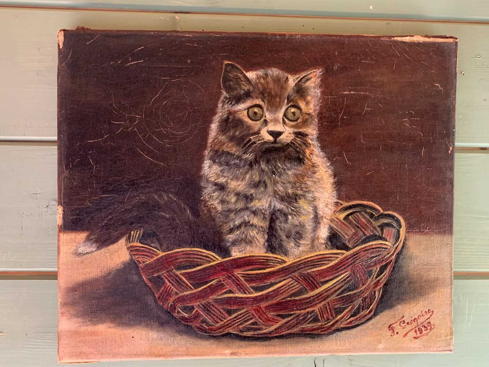 Ahhh… well caught expression on this irresistible kitten standing in his basket!