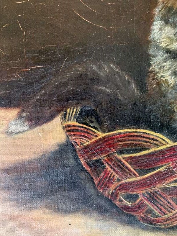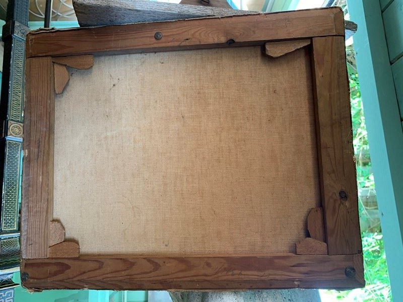 canvas undamaged, no repairs, some paint loss to the edges of the canvas where it may have been framed in the past.