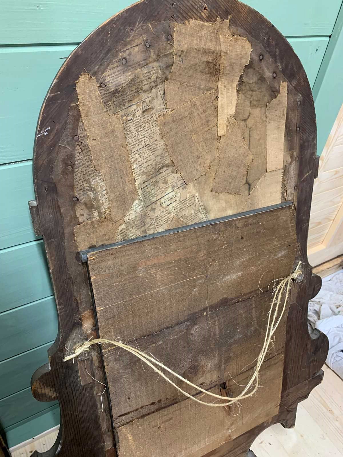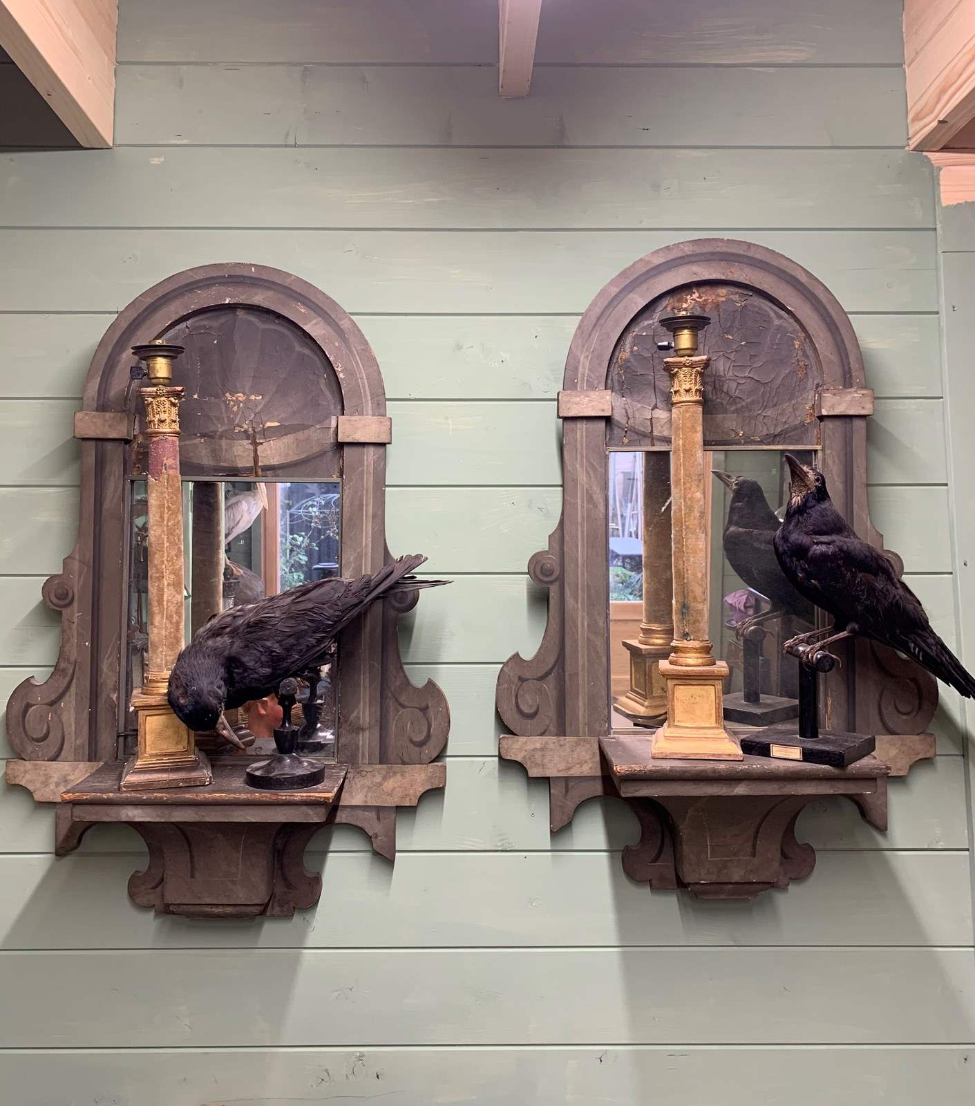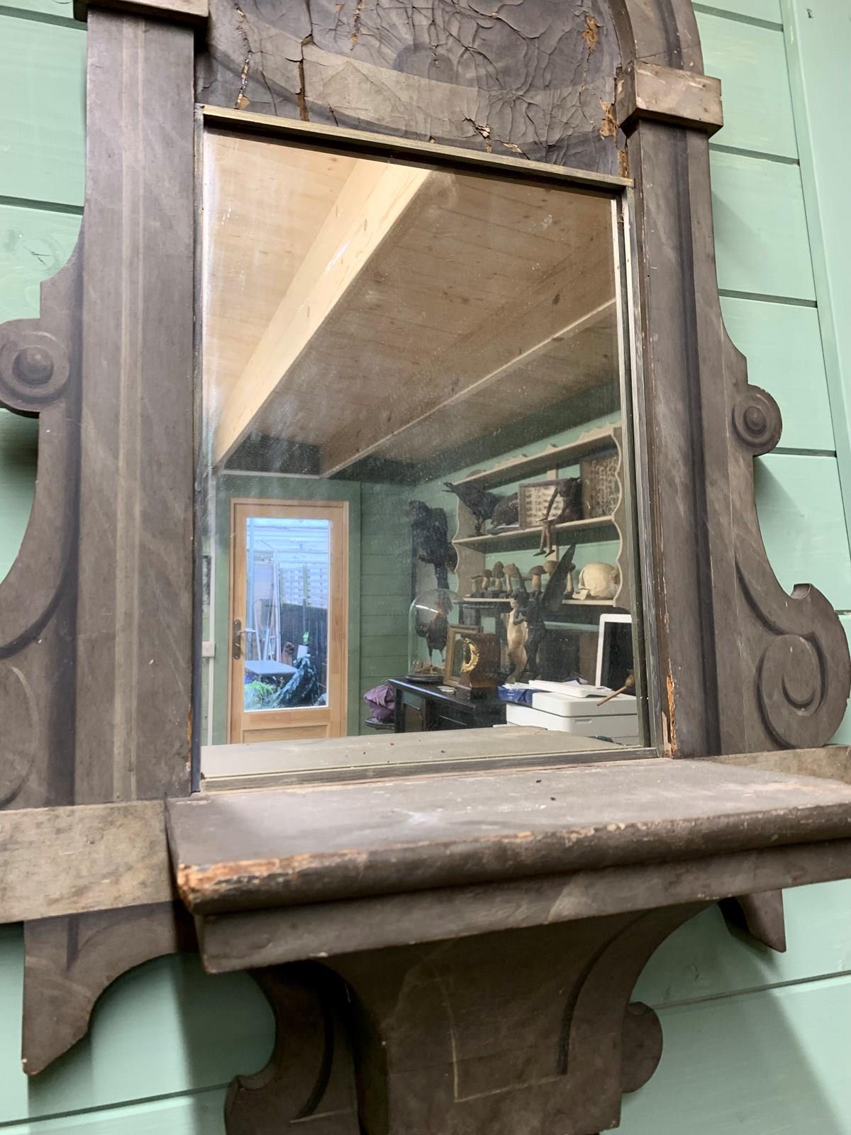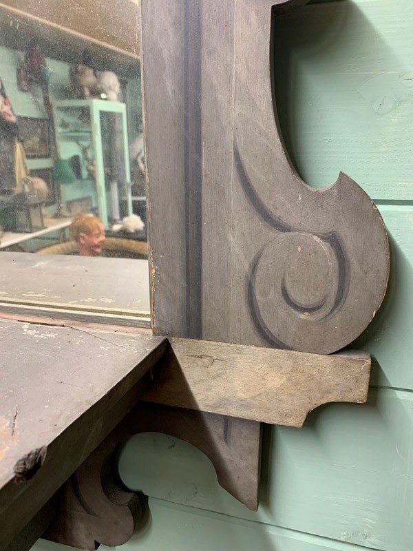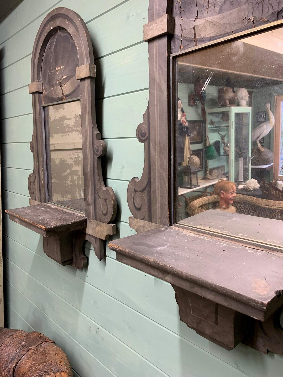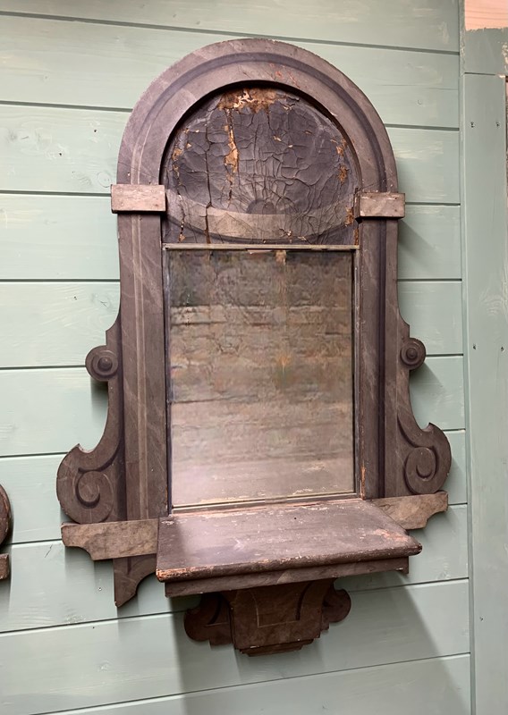 Unusual 19th Century Continental wall mirrors in original paint, with integral shelf. Possibly from a pair of church tabernacles later converted to mirrors