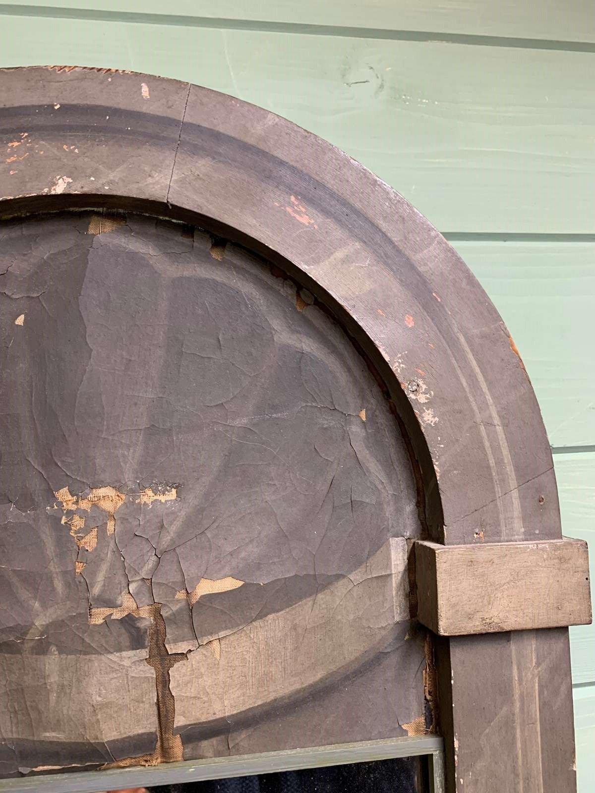 Remains of upper painted canvas fragments in trompe l’oeil following the pattern on the painted framework.