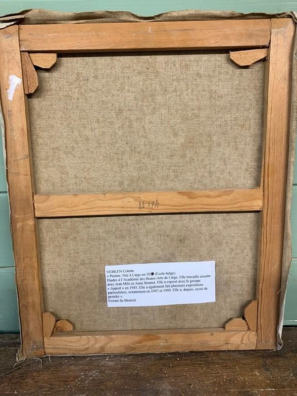 Another charming mid century canvas by the artist Colette Verken, born in 1920. Belgian school.
