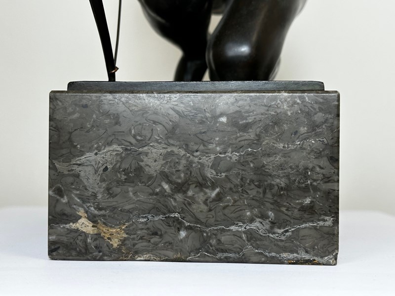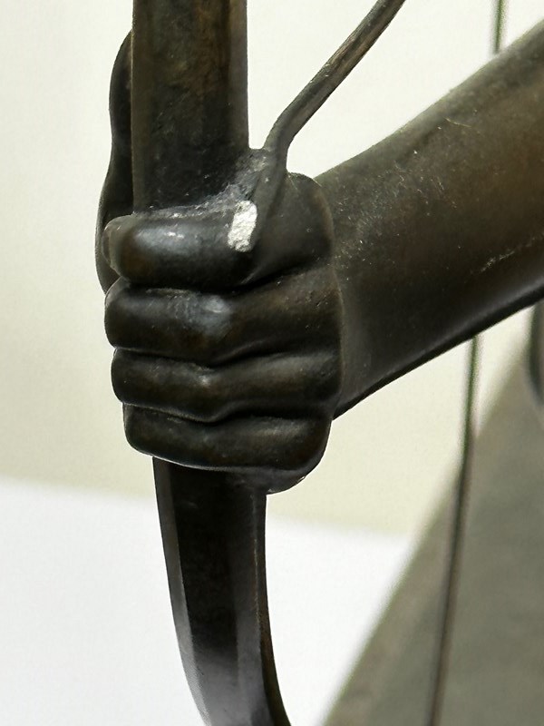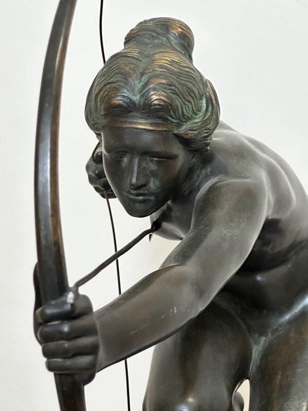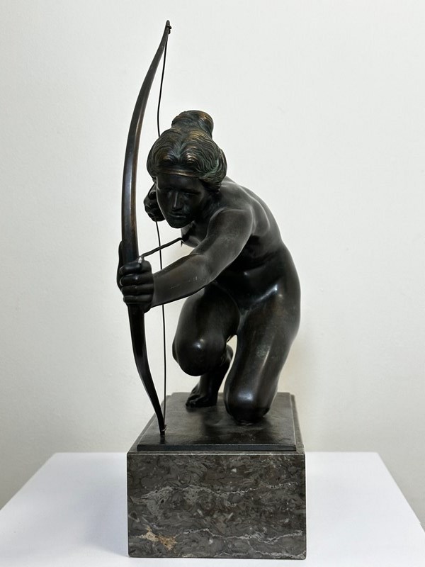 This beautiful Art Deco Bronze Sculpture of Diana Goddess Holding Bow & Arrow is a unique and stunning decoration. Signed by renowned and skilled sculptor artist R Henn, it is sure to be admired.