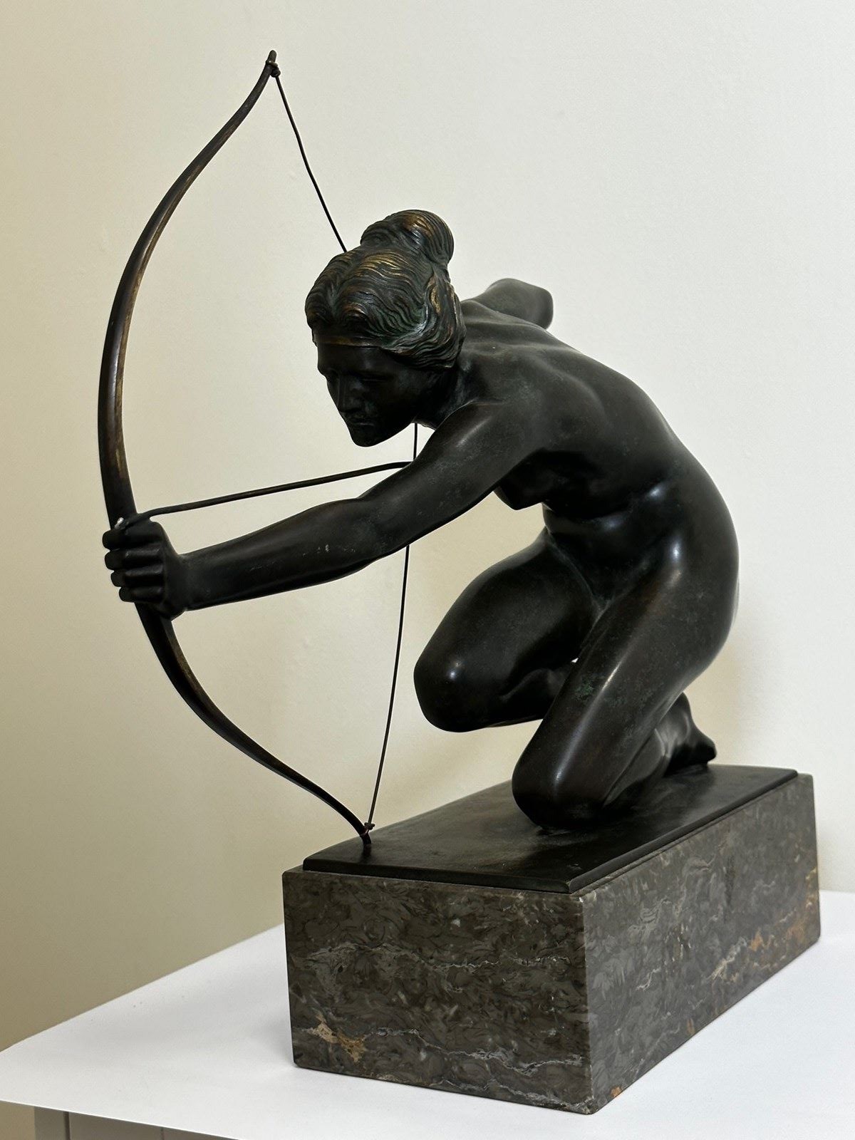 Original Art Deco Bronze Sculpture Diana Goddess Signed R Henn