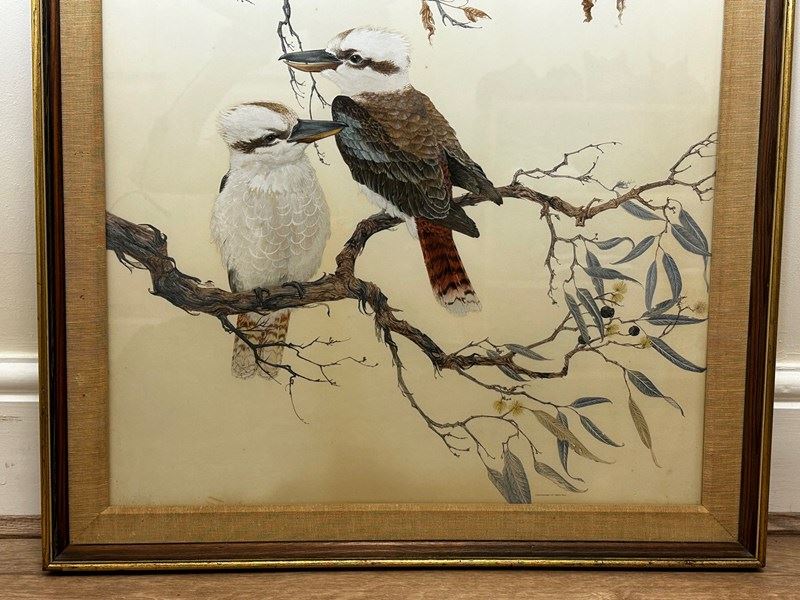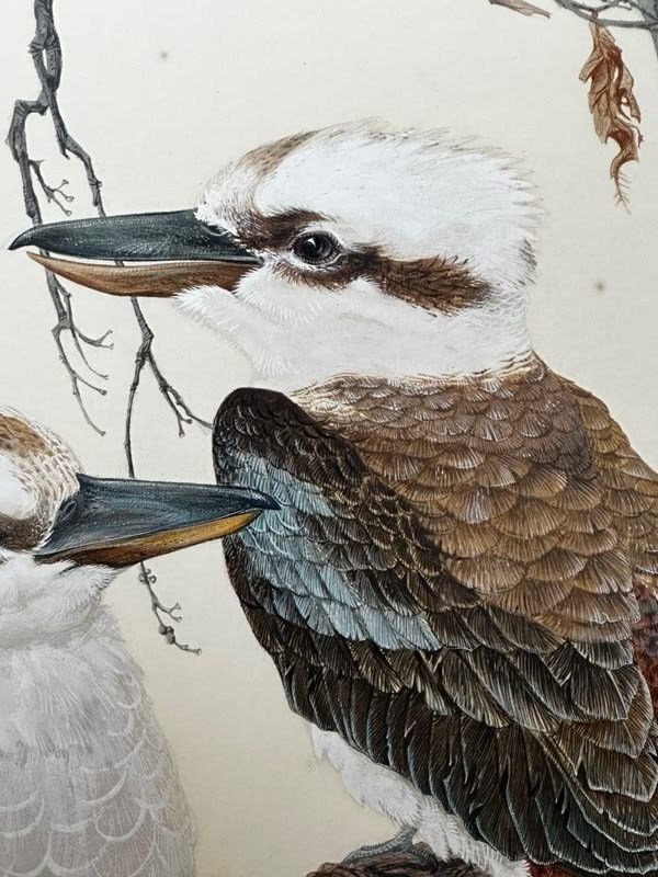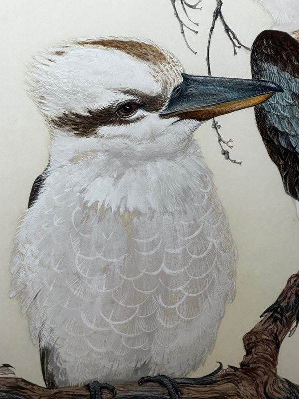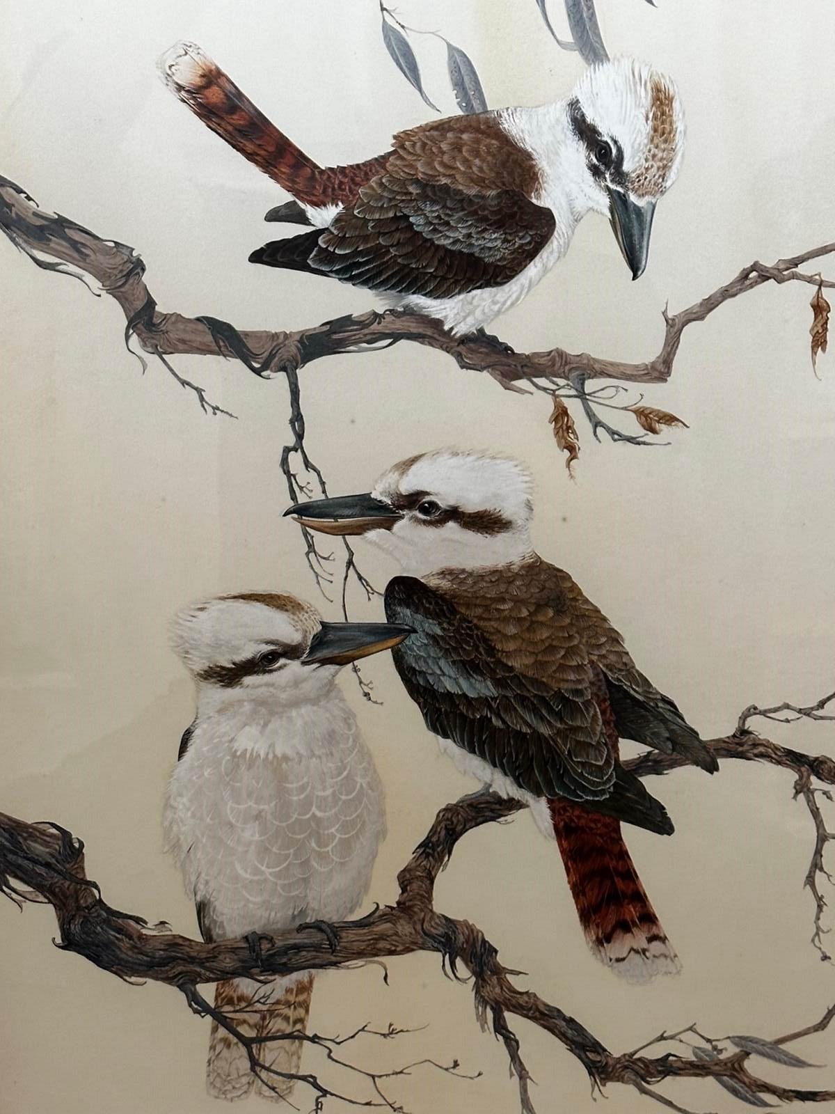 Large Watercolour Group 3 Kookaburras Birds Perched In Outback By Robin Hill