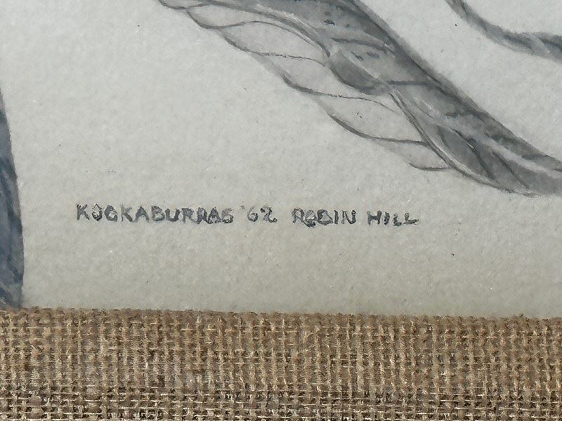 Title “Group of 3 Kookaburras” and dated 62 for 1962 By Robin Hill.