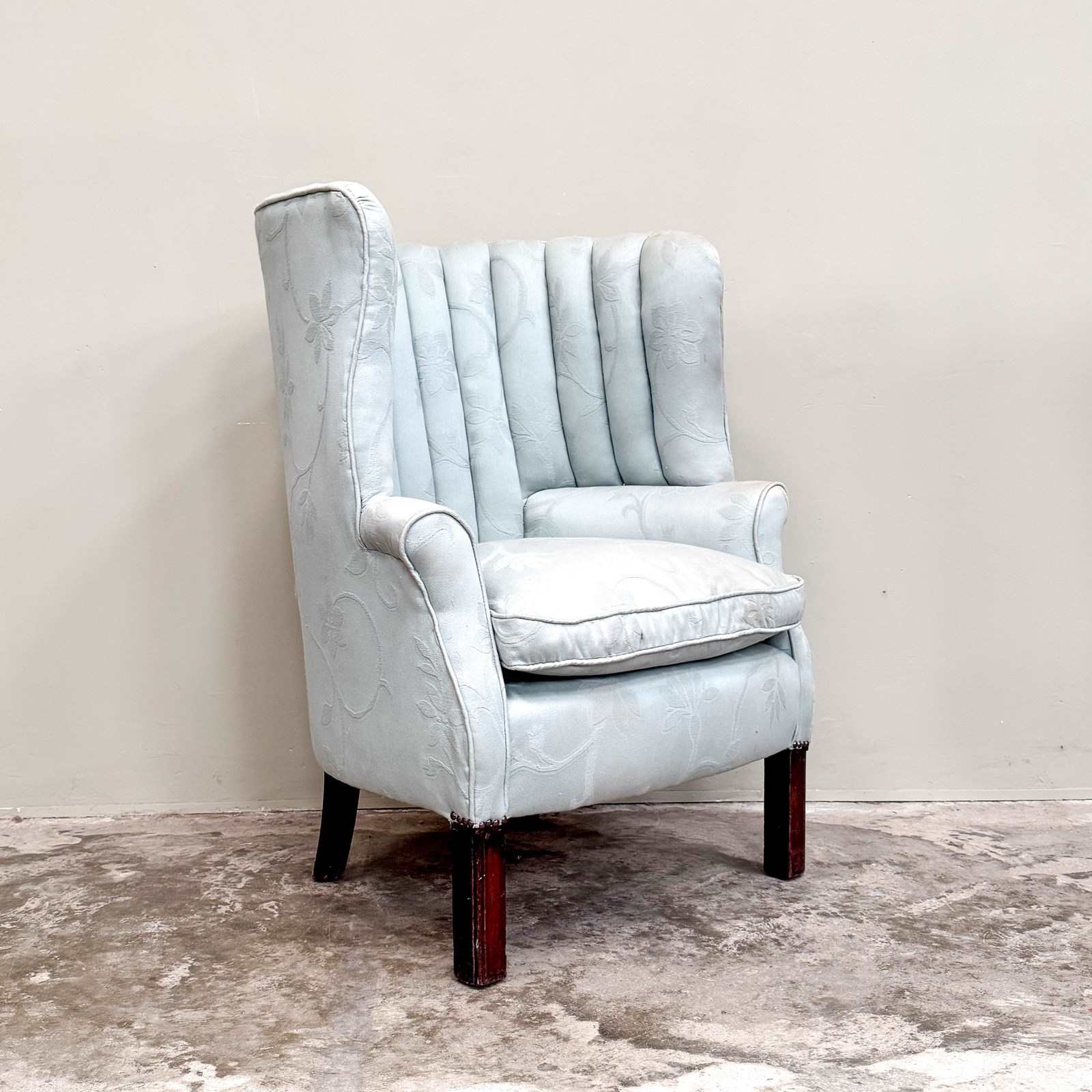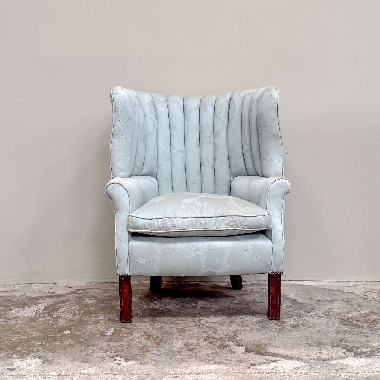 A nicely proportioned 1920's barrel back. Standing on mahogany legs with cantered corners. Sprung seat and ribbed back. (can be upholstered ribbed or a plain back) with feather seat cushion.