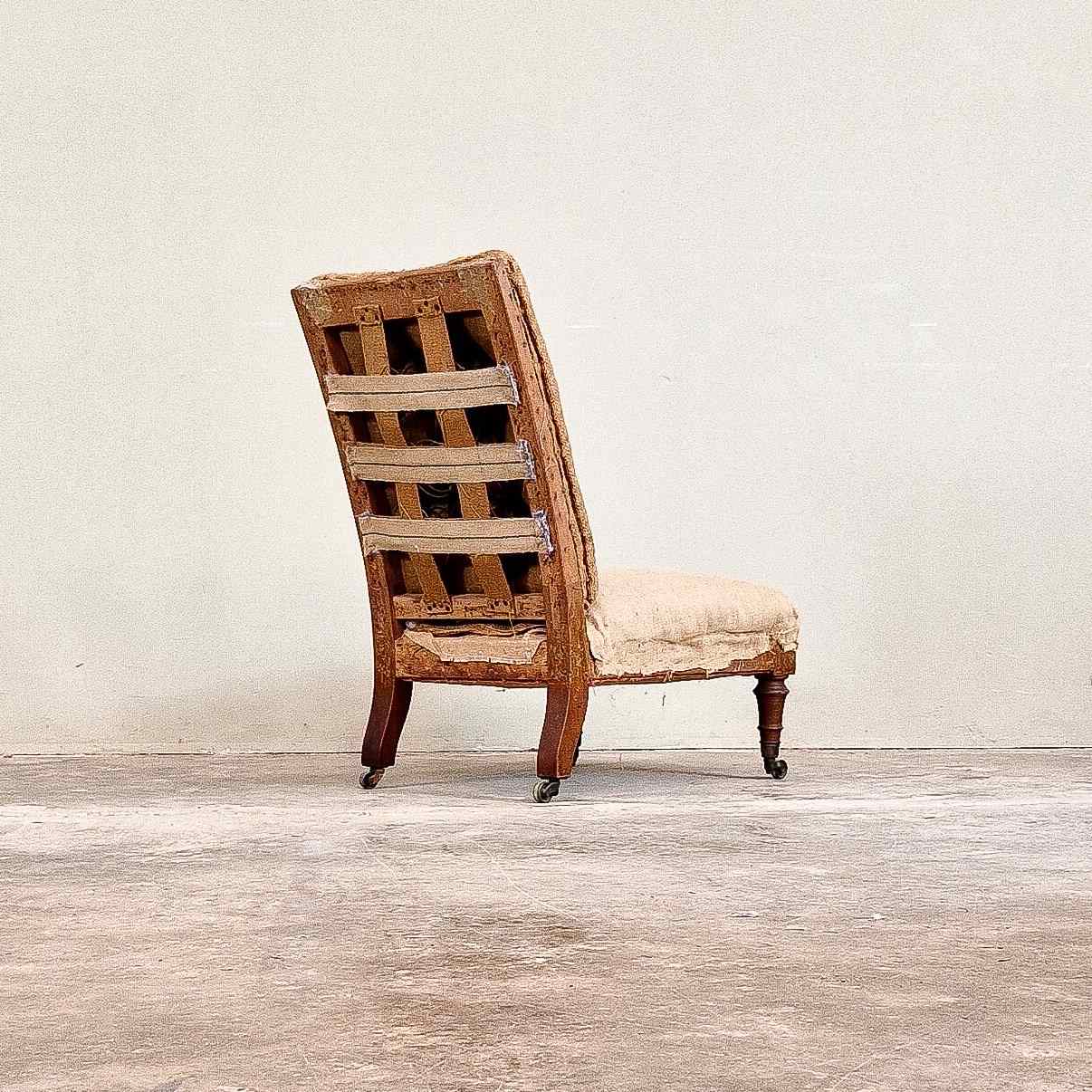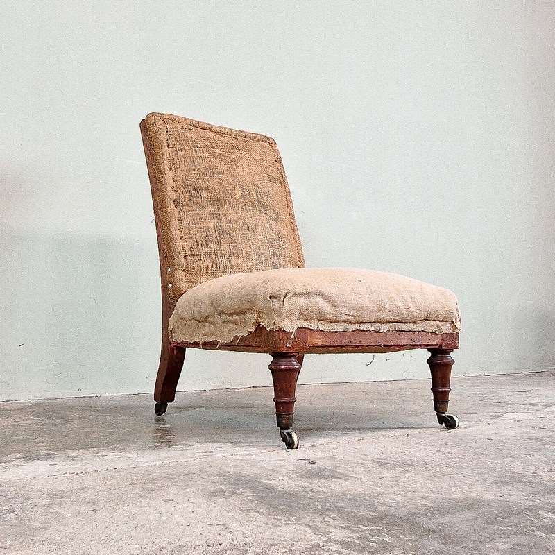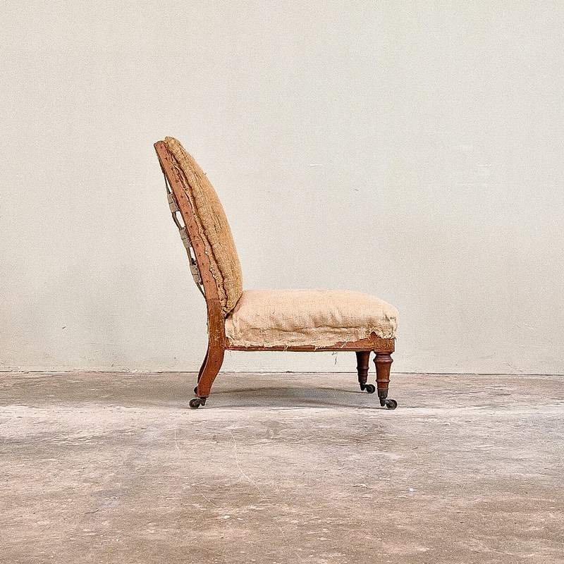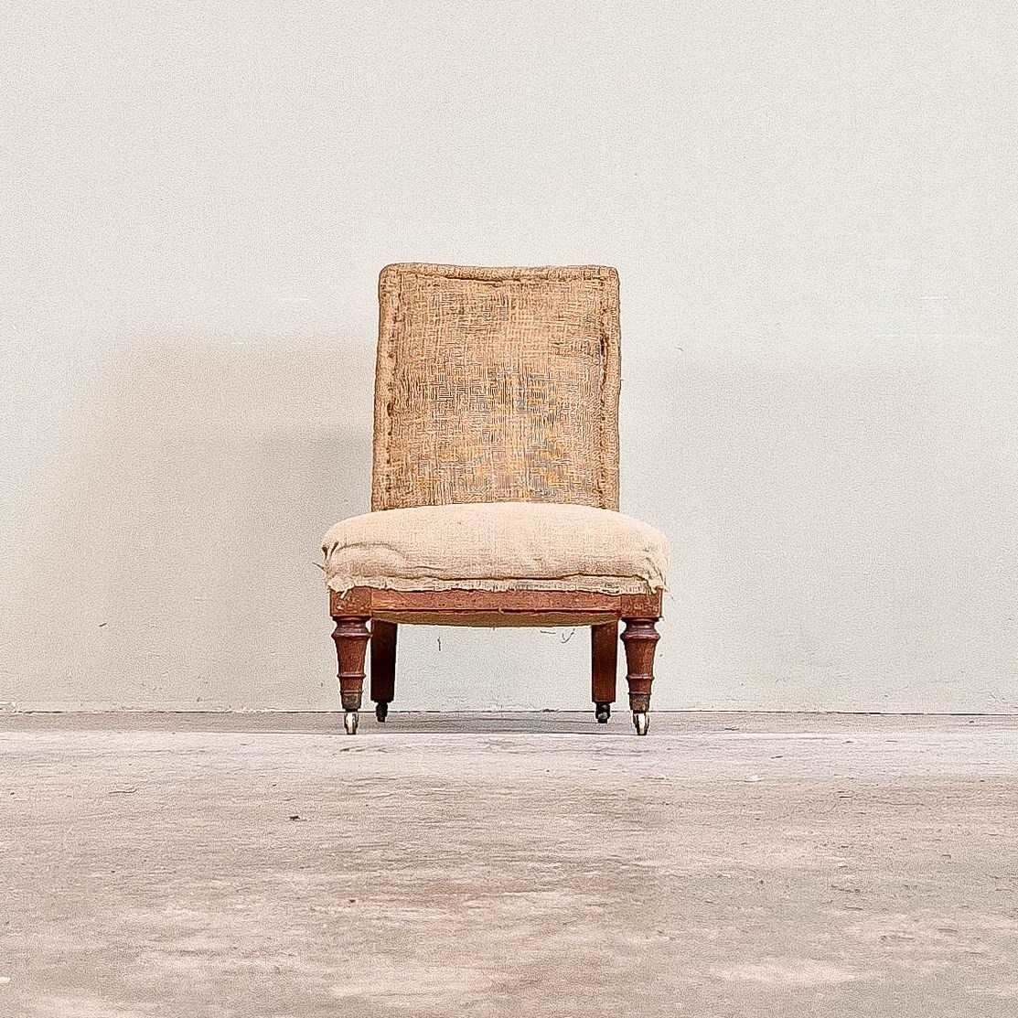 A 19th century slipper chair, standing on a very good quality mahogany turned leg with brass cup castors. Circa 1850