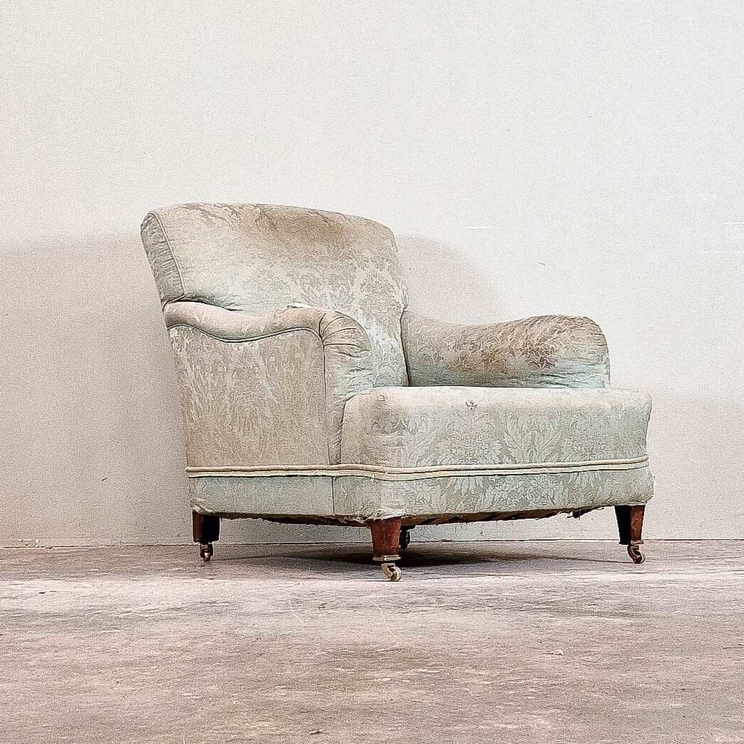 20th century armchair, standing on square taper mahogany legs. With 'P' arms, Bridgewater style. Circa 1930s