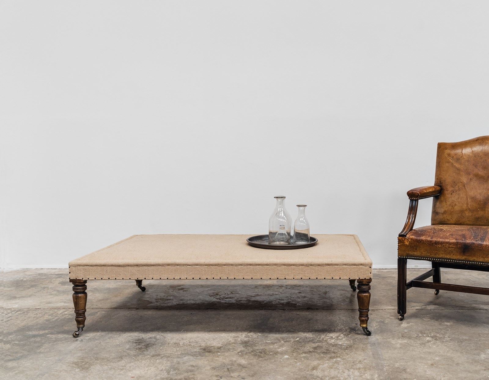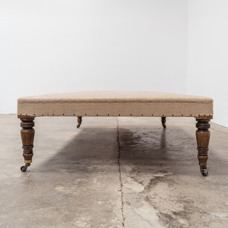 As with most of our footstools they can be made to any size you would like with any leg to suit your requirements. Most of our footstools are finished in either hessian or scrim, showing the hand stitching and finished with tacks.