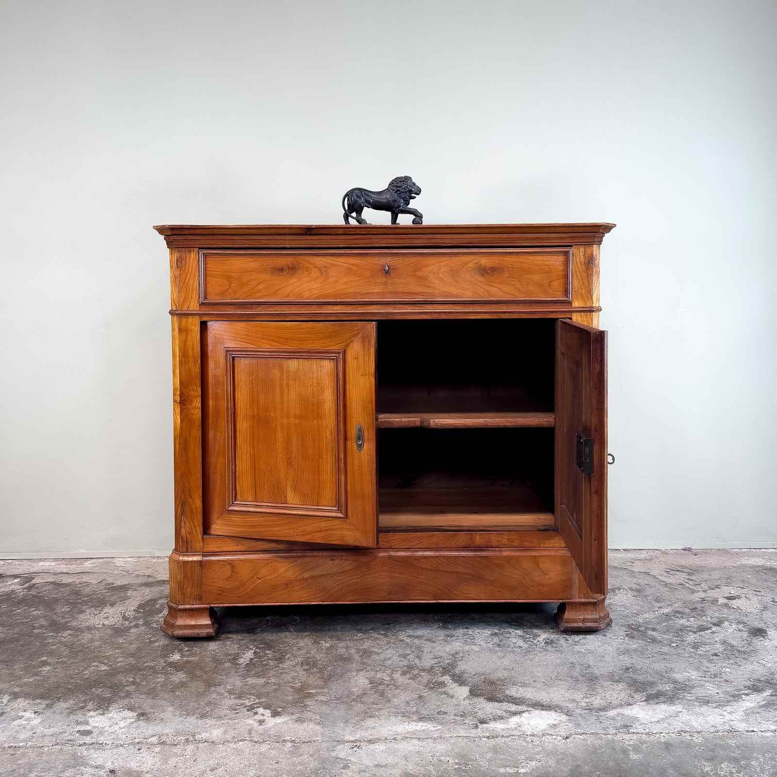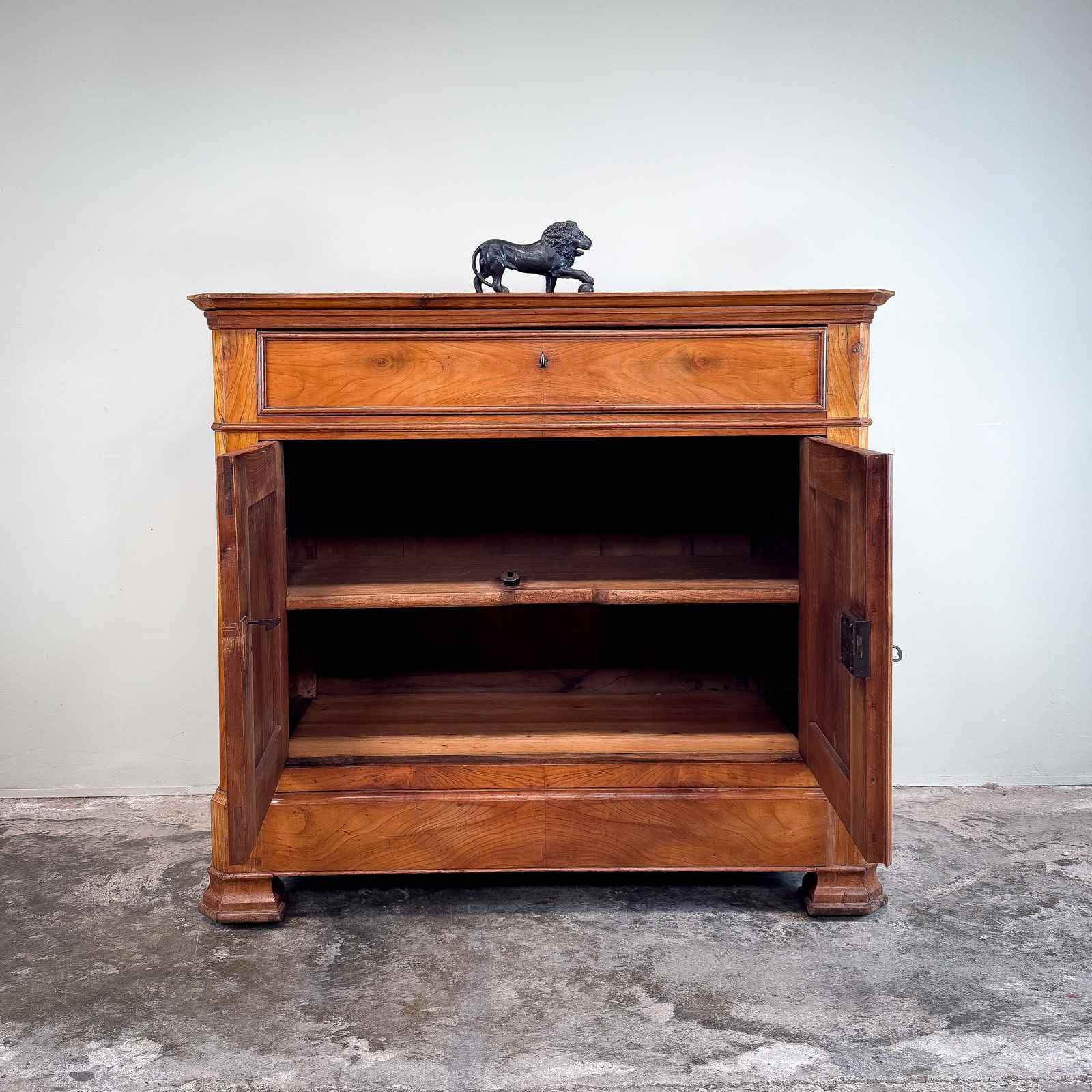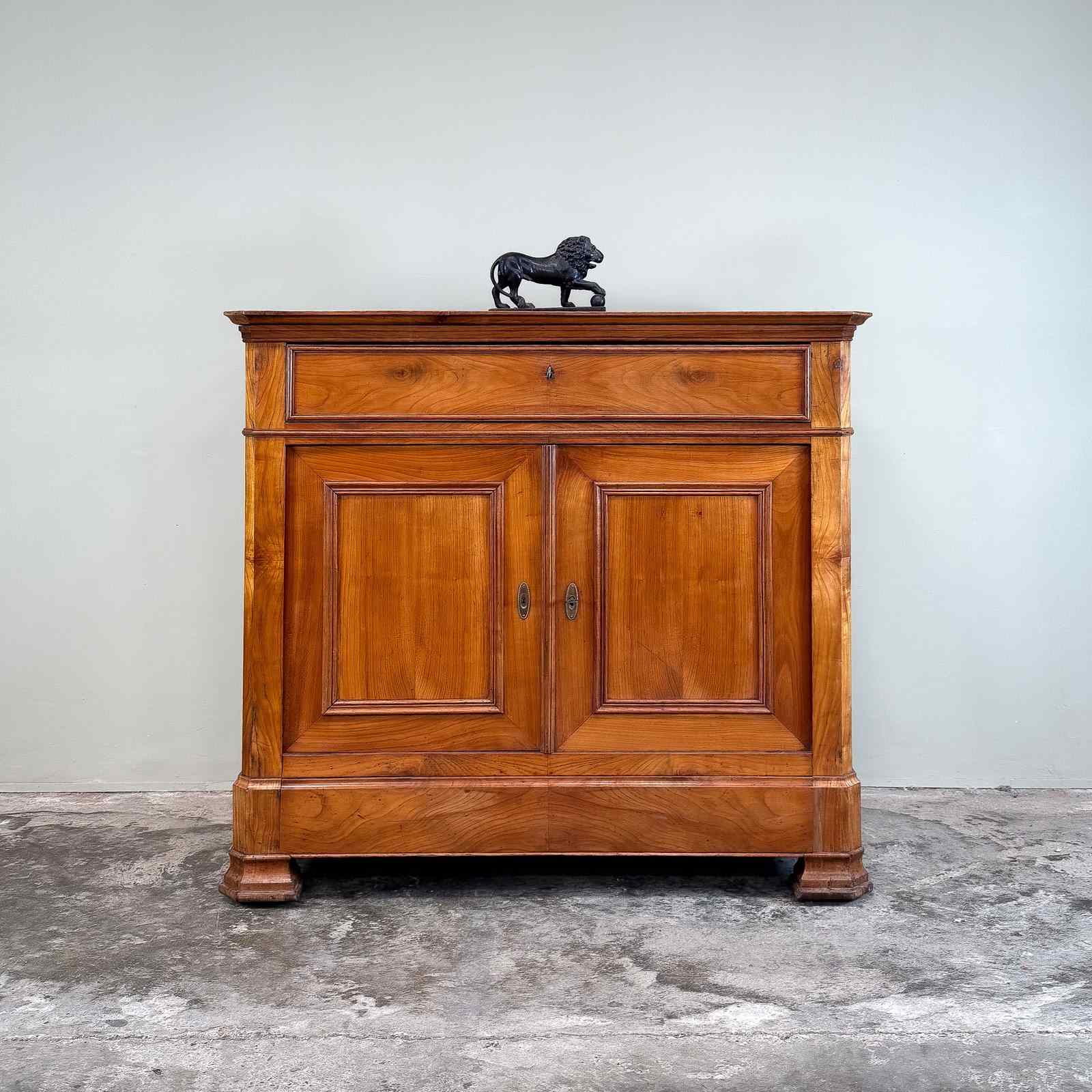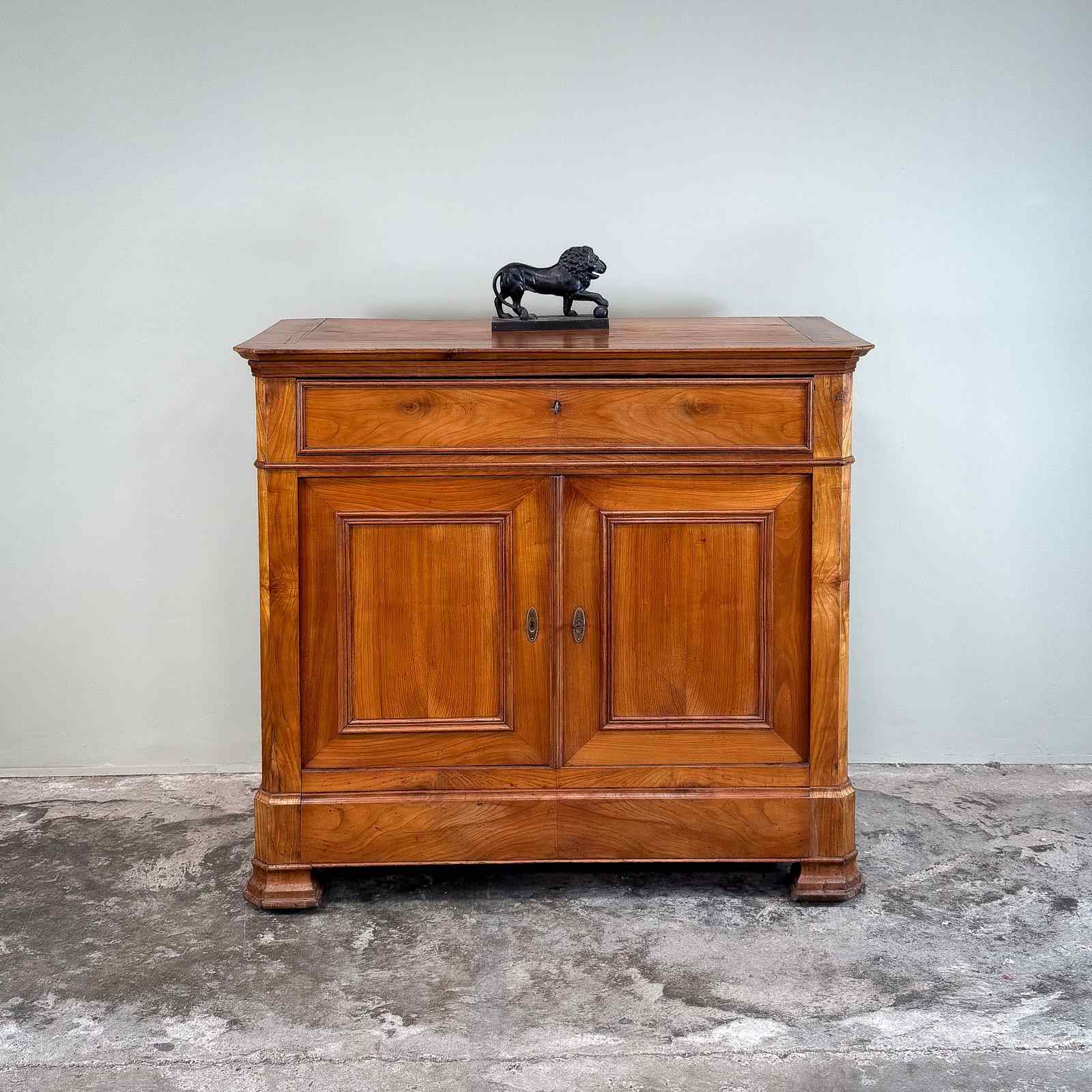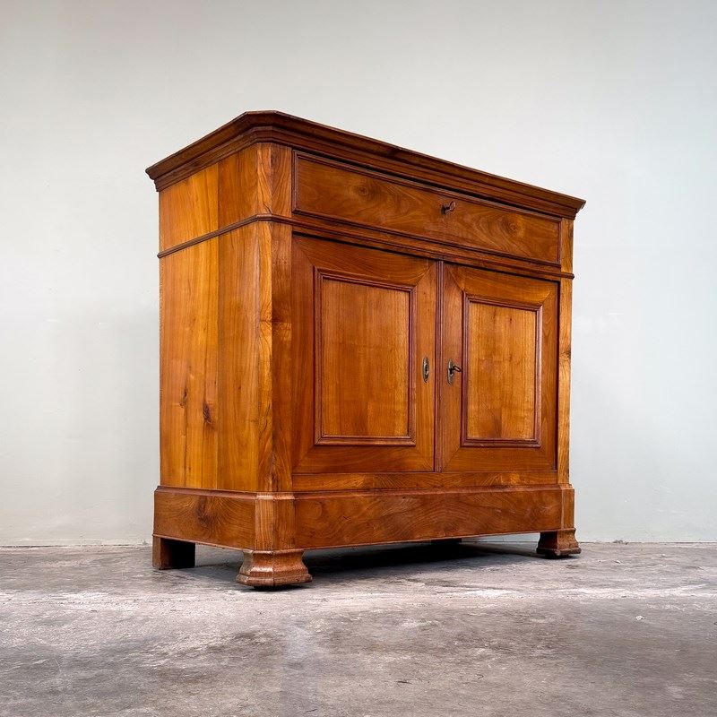 French 19th century buffet, very good quality and wonderful colour. With a single drawer above the cupboard, with hidden drawer in the apron and original lock and key.