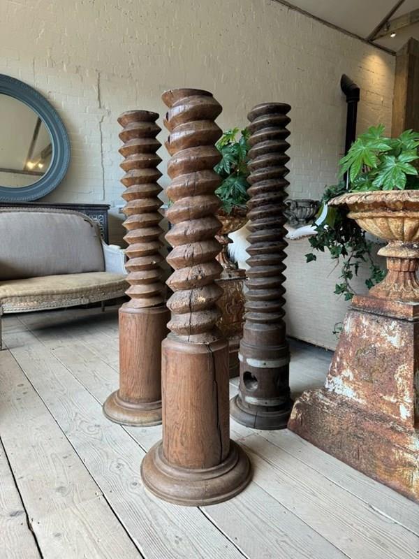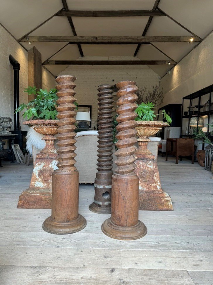 We have 3 large French wine press screws available, sold individually but look wonderful as a group. These bring lots of character to any room and have a wonderful structural feel.
