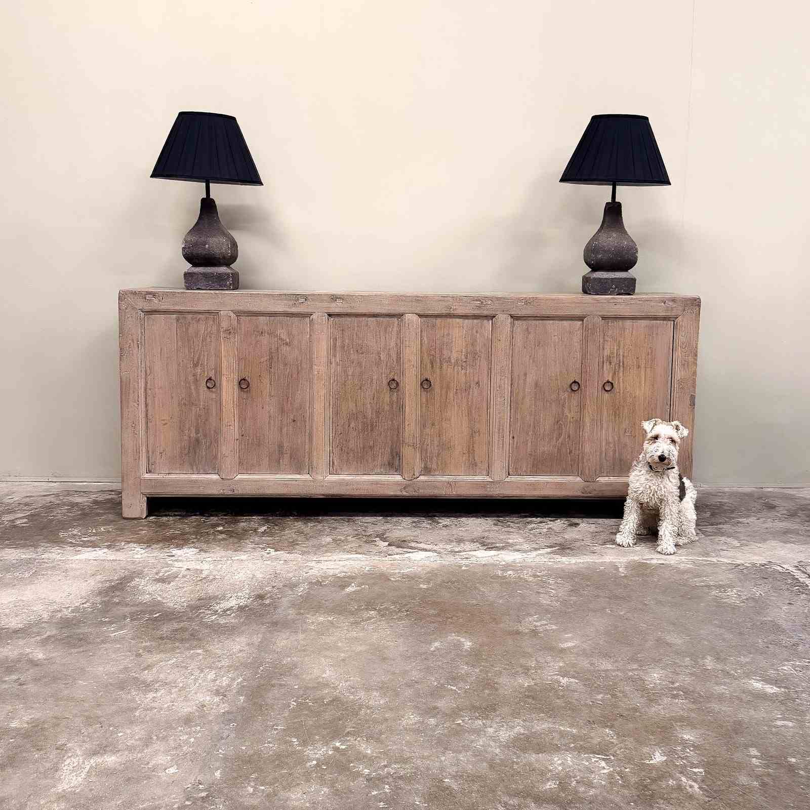 Grand scale free standing sideboard, lovely patina. Perfectly proportioned with six doors and single shelving to the interior. The perfect piece for dining room, sitting room or great for a kitchen island.