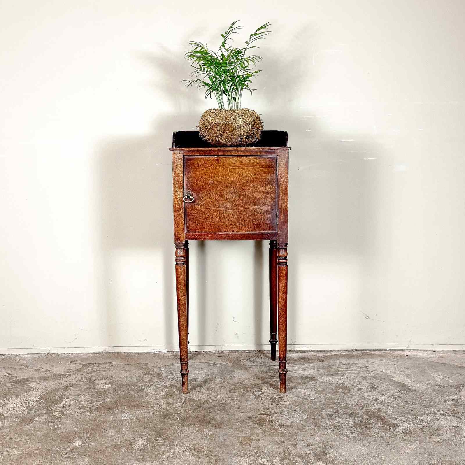 Early 19th Century mahogany pot cupboard, with single door. Standing on elegant tuned taper legs.