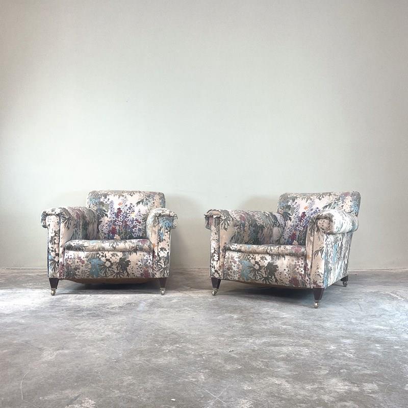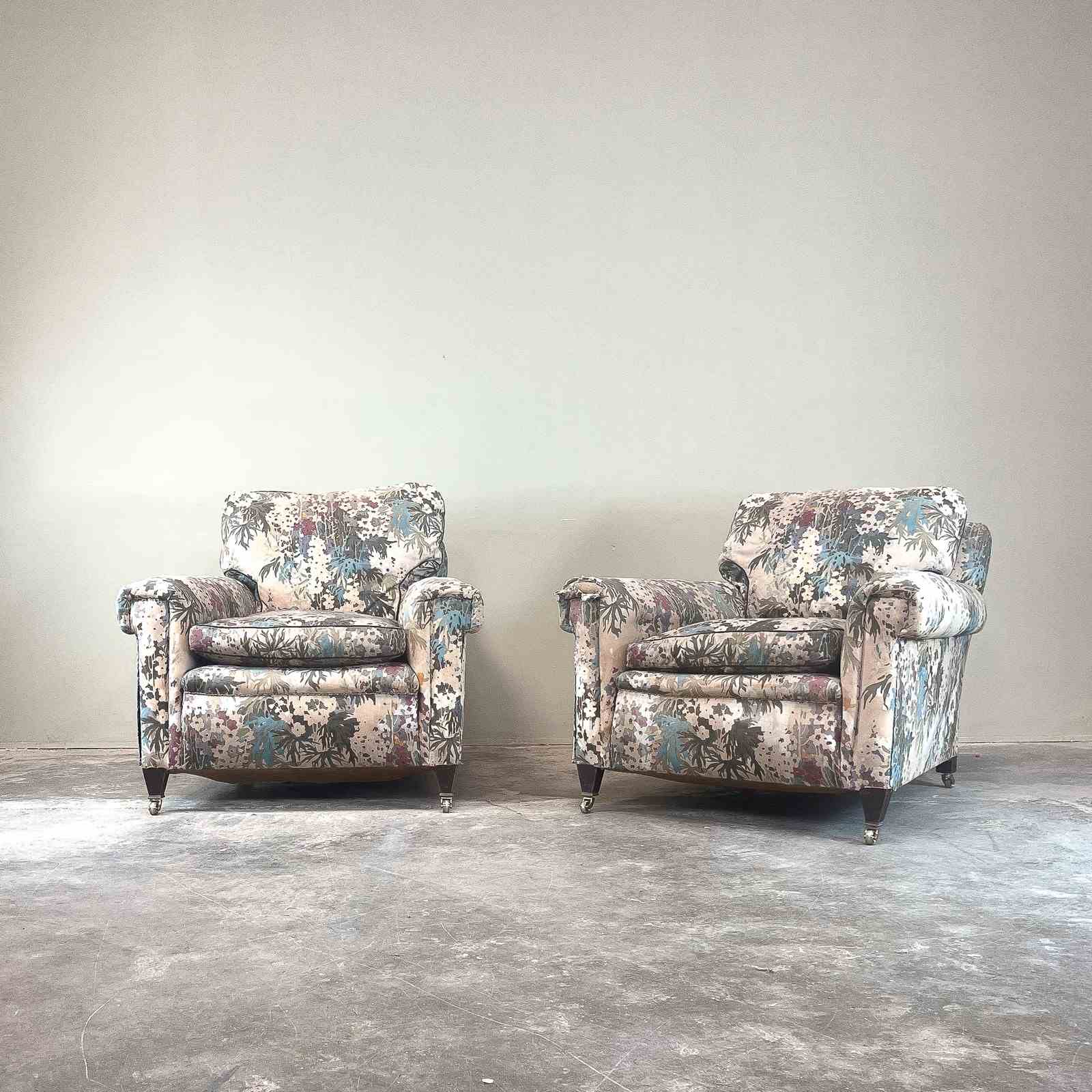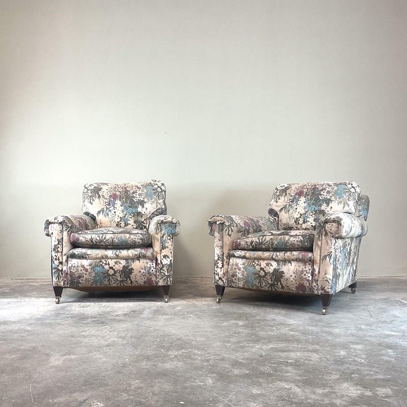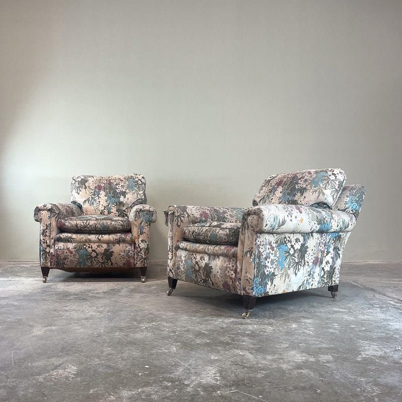 Pair Of Very Deep Seated Maple And Co Armchairs
