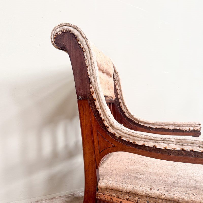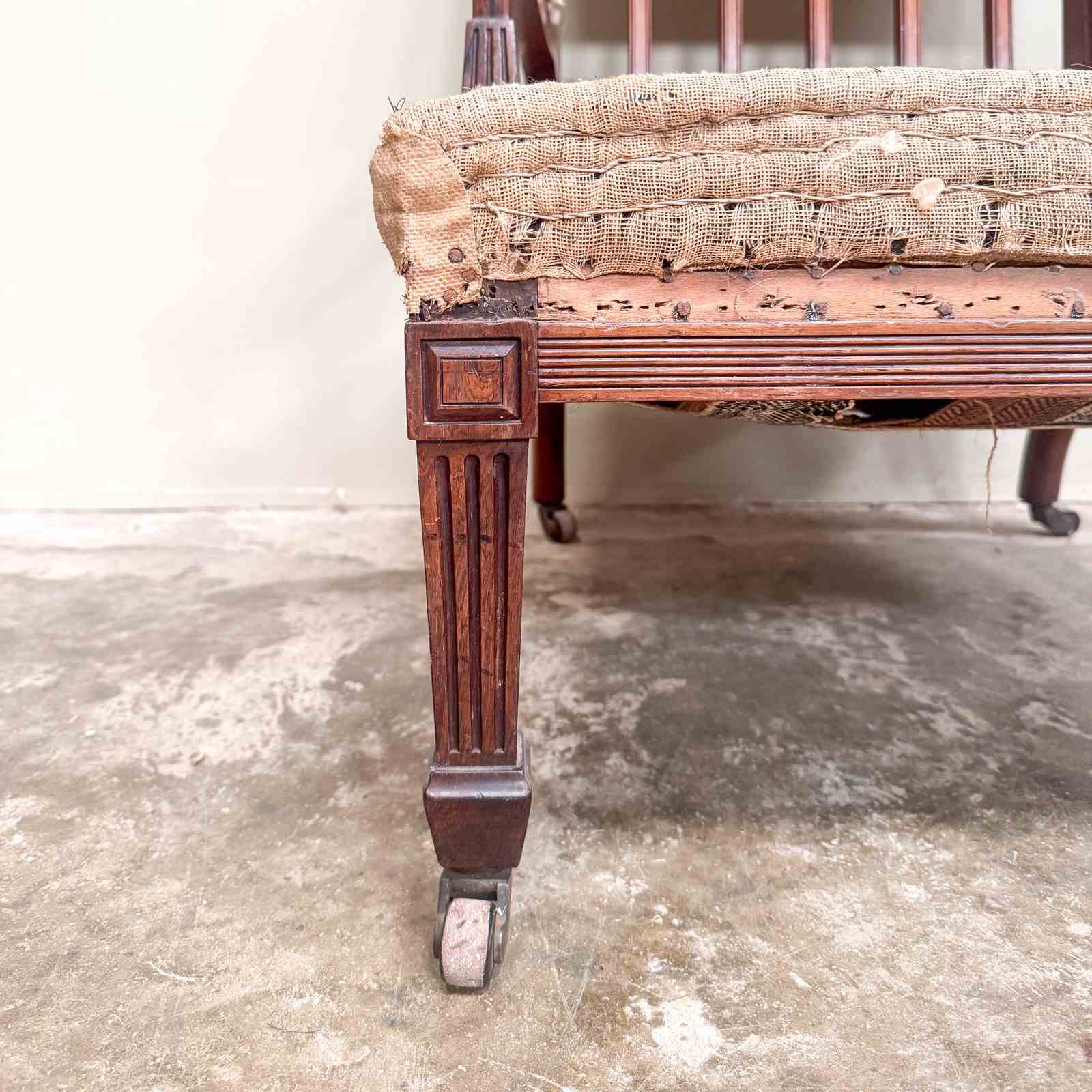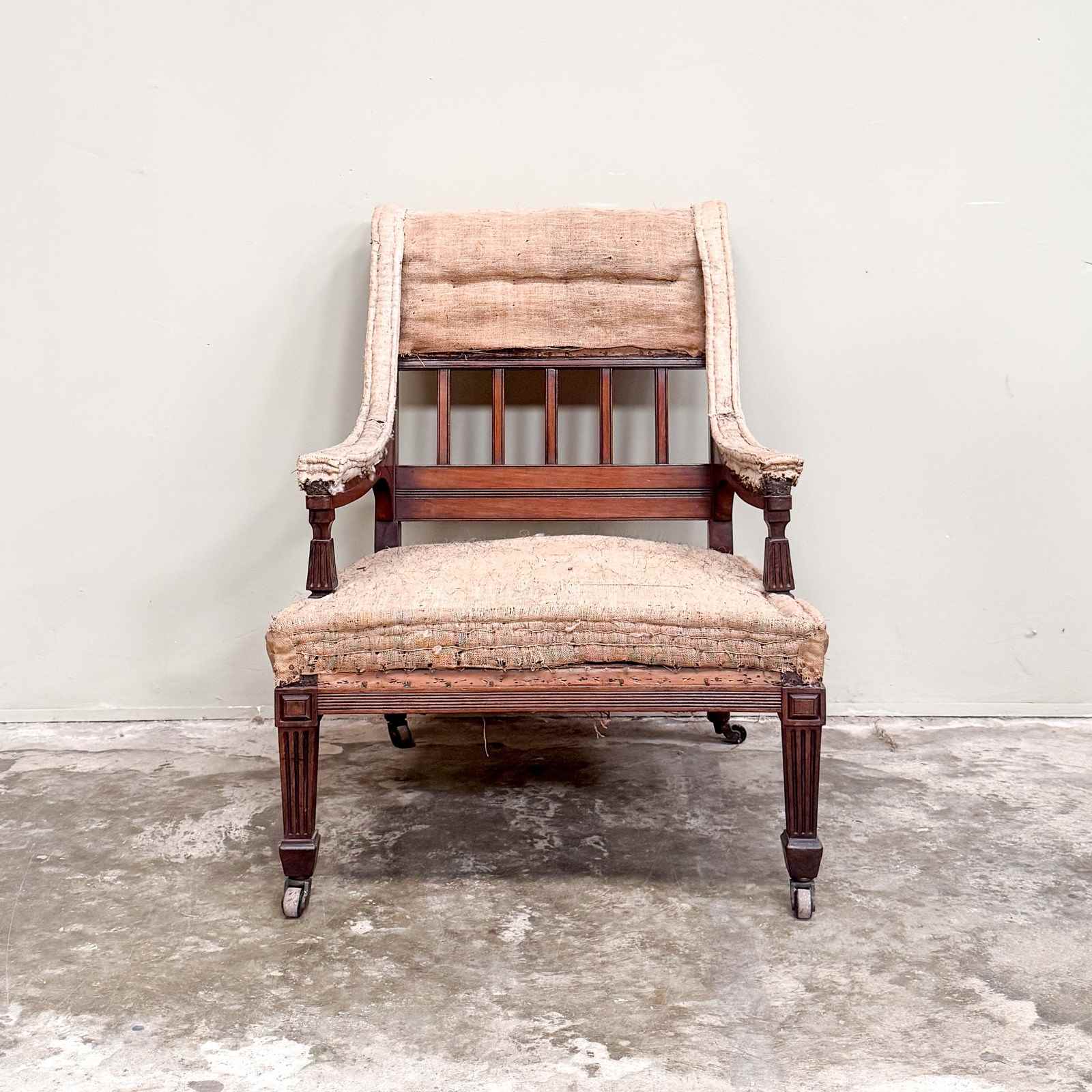 Very good quality Rosewood, open arm library chair. Standing on tapered, fluted, spade legs and original ceramic castors. With sprung seat, scroll back and fluted, tapered arm supports. Circa 1920