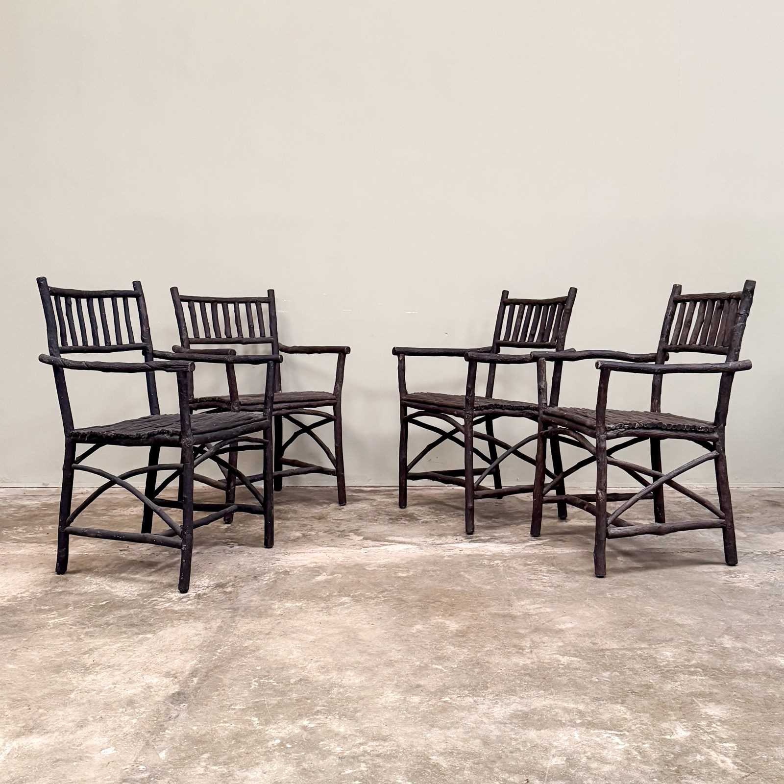 Charming set of four ebonised twig chairs, in excellent condition, with no breaks or movement. Would look fantastic in a conservatory or garden room. Circa 1800 - 1900