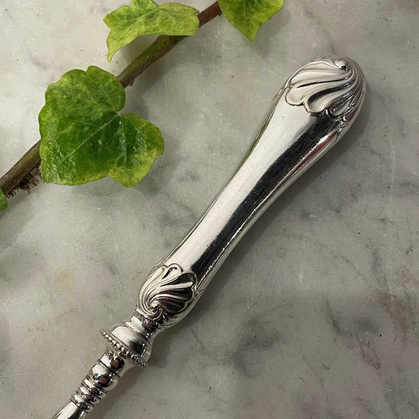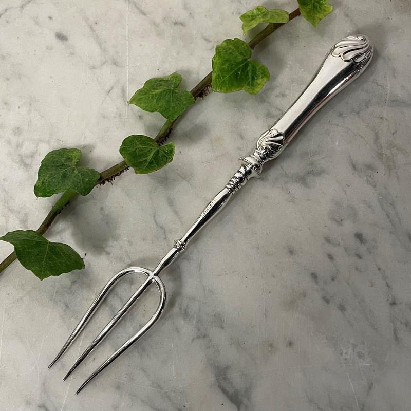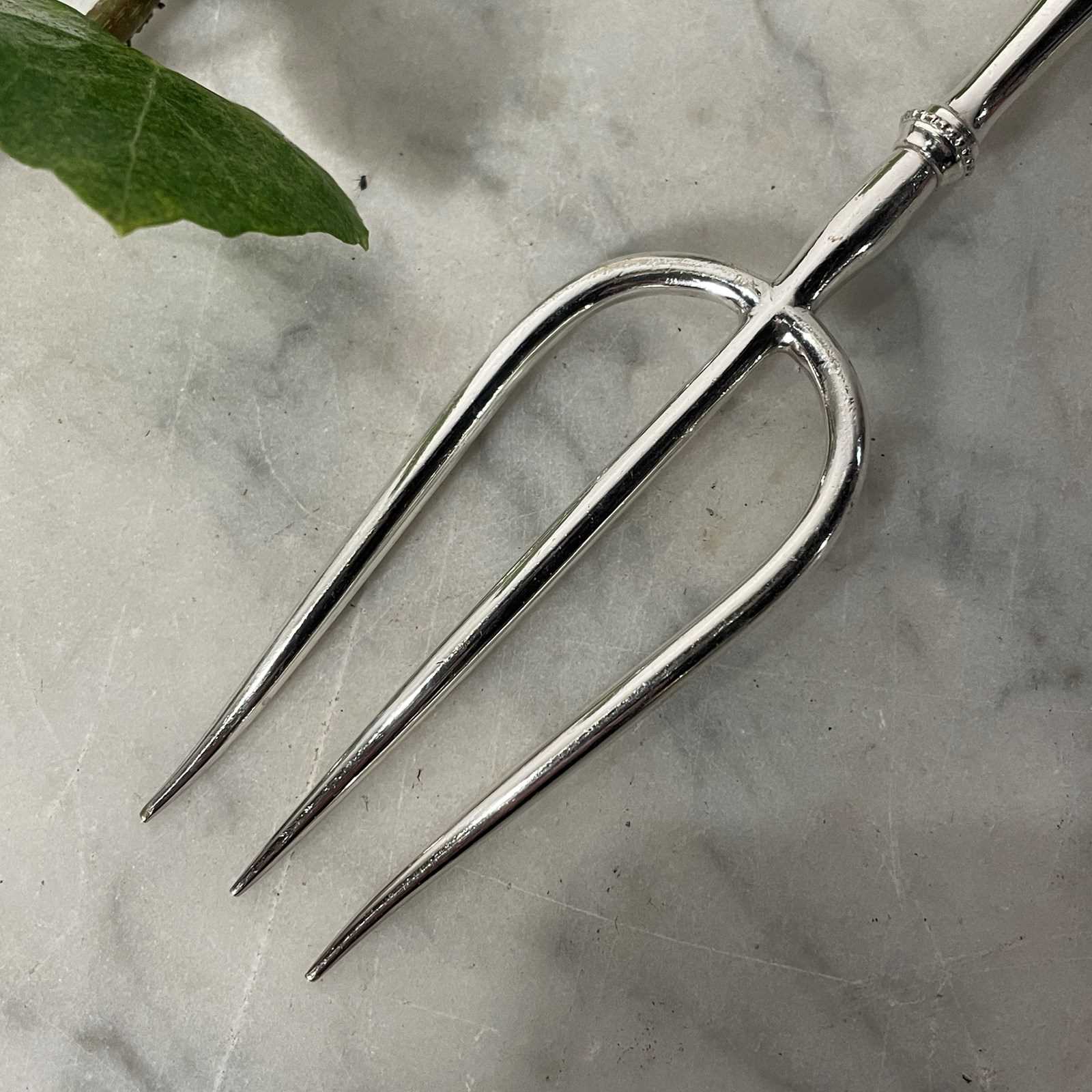 A large Victorian silver plated serving fork perfect for serving charcuterie or bread.