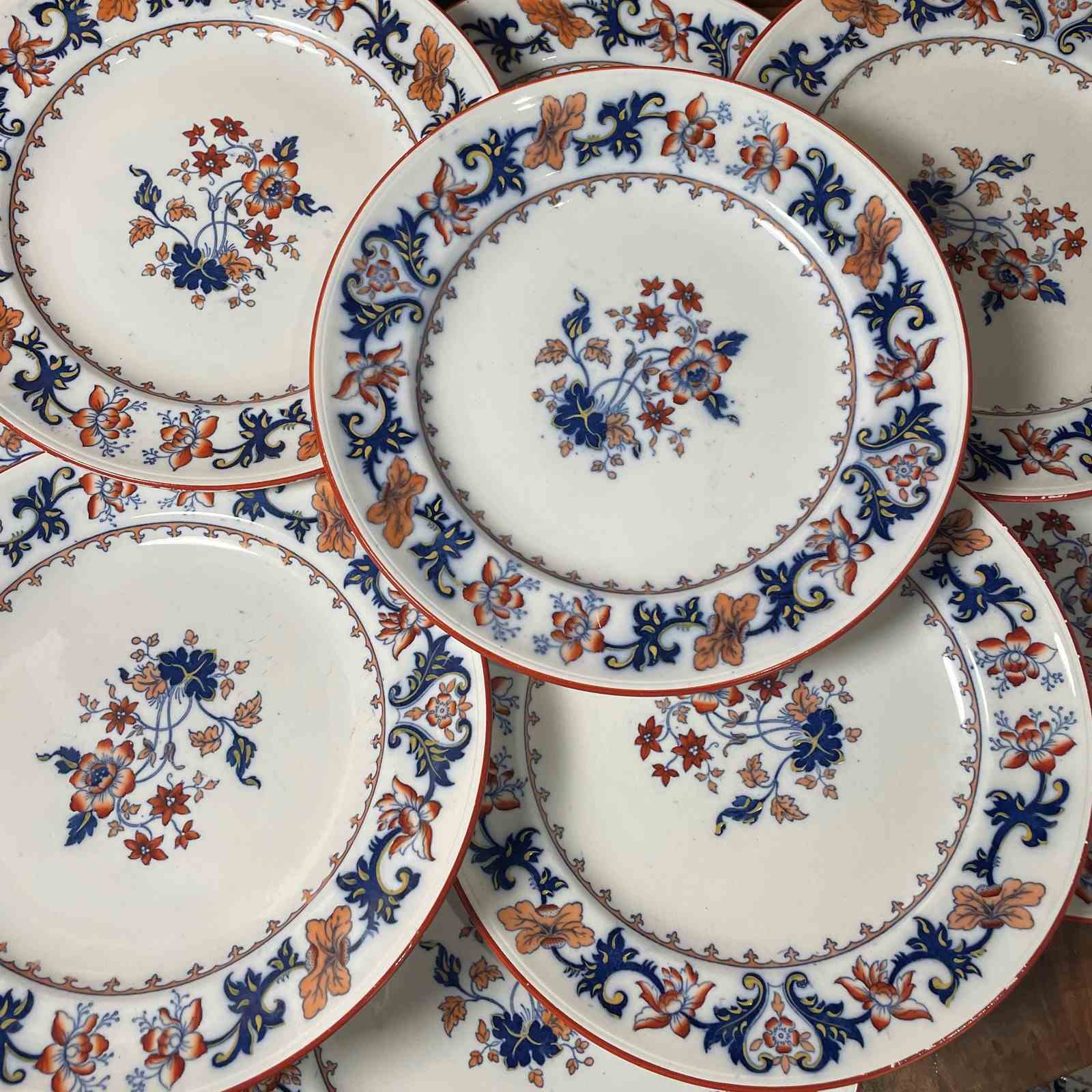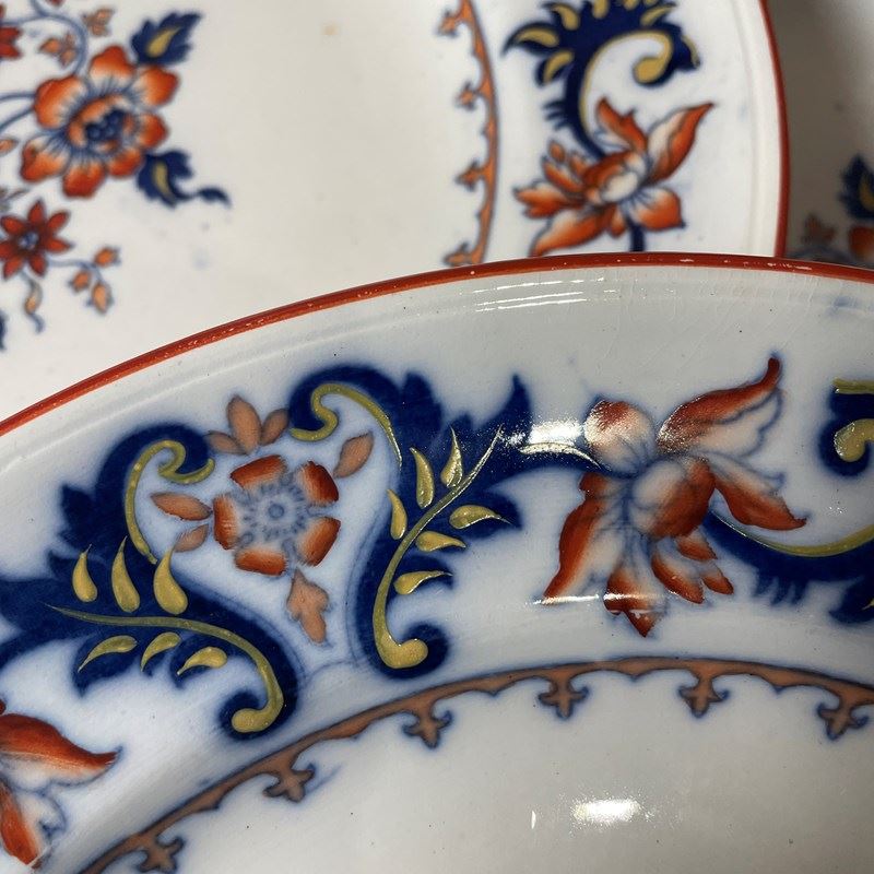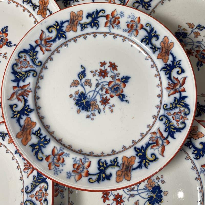A set 9 of ironstone plates made in the 19th century by the Minton factory.