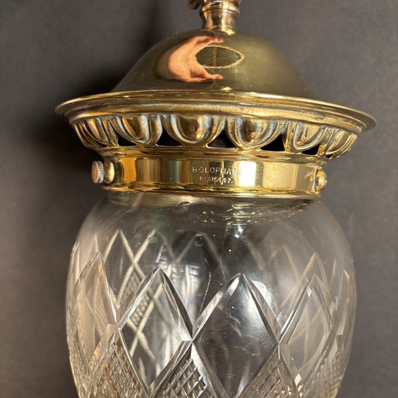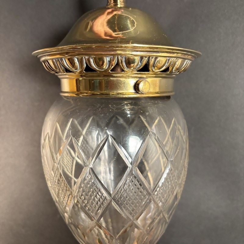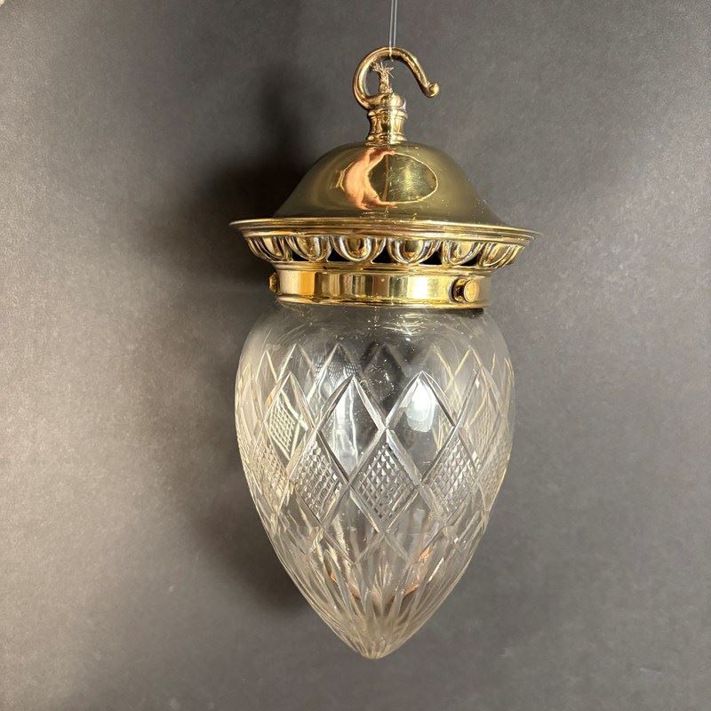 A pretty glass light fitting ( needing wiring ) with brass cap top