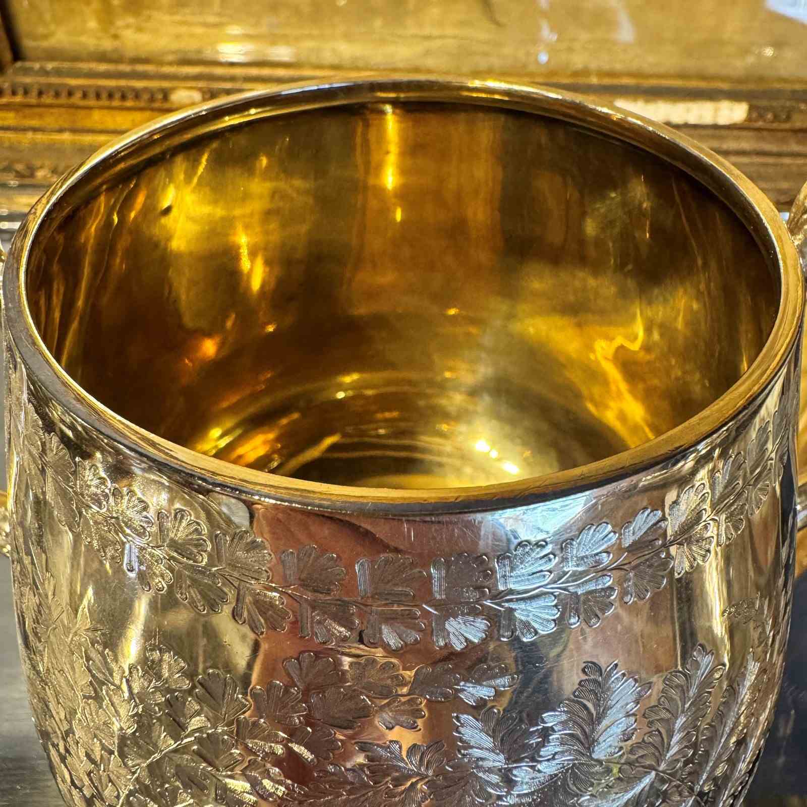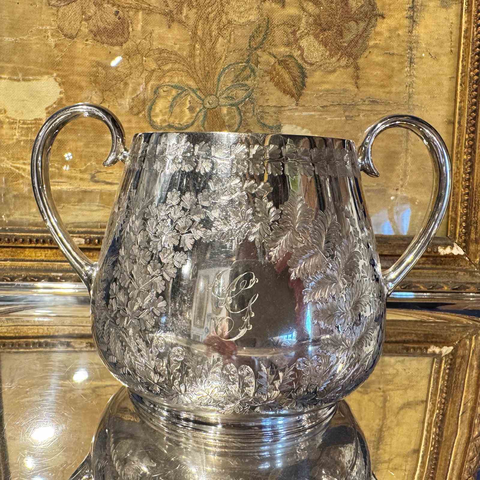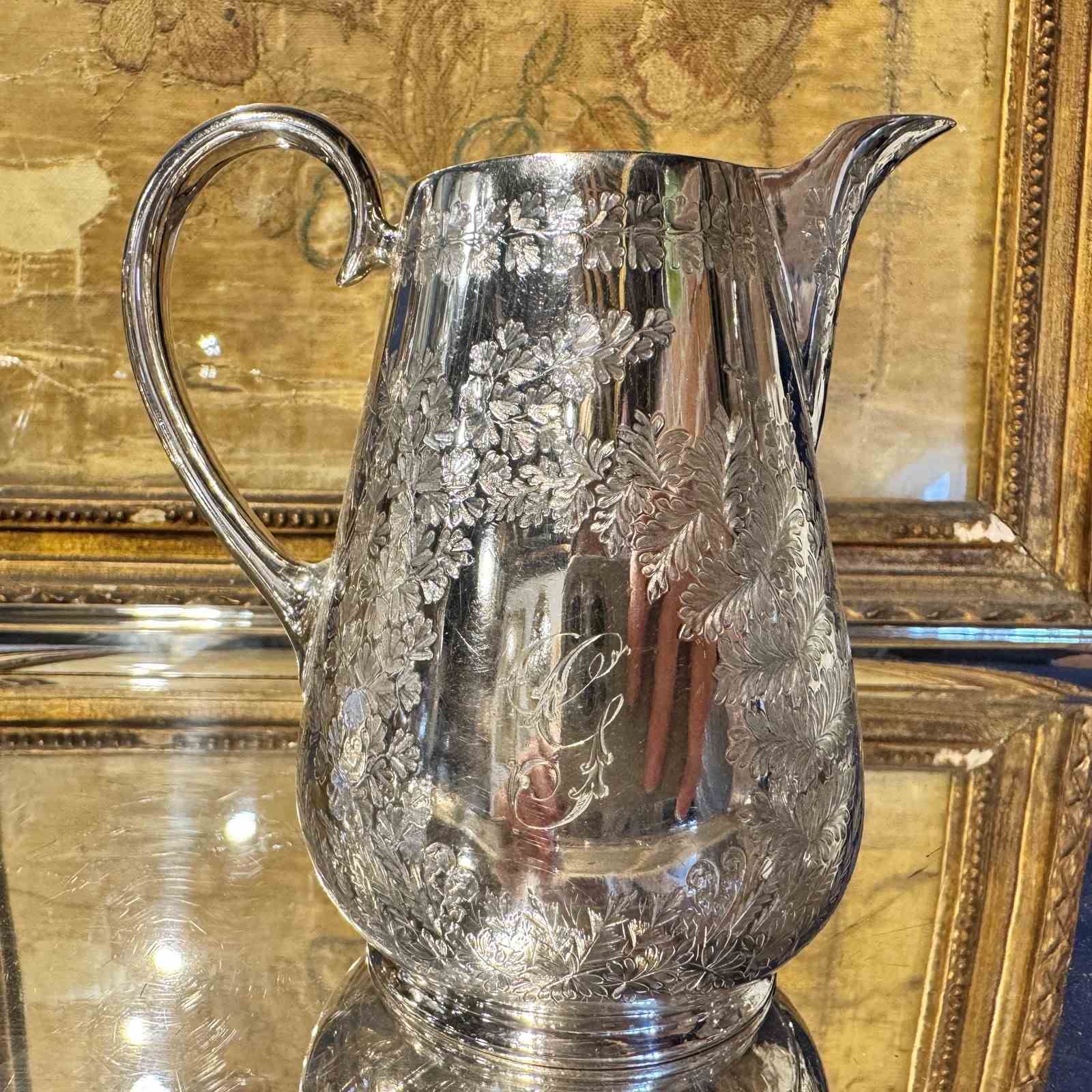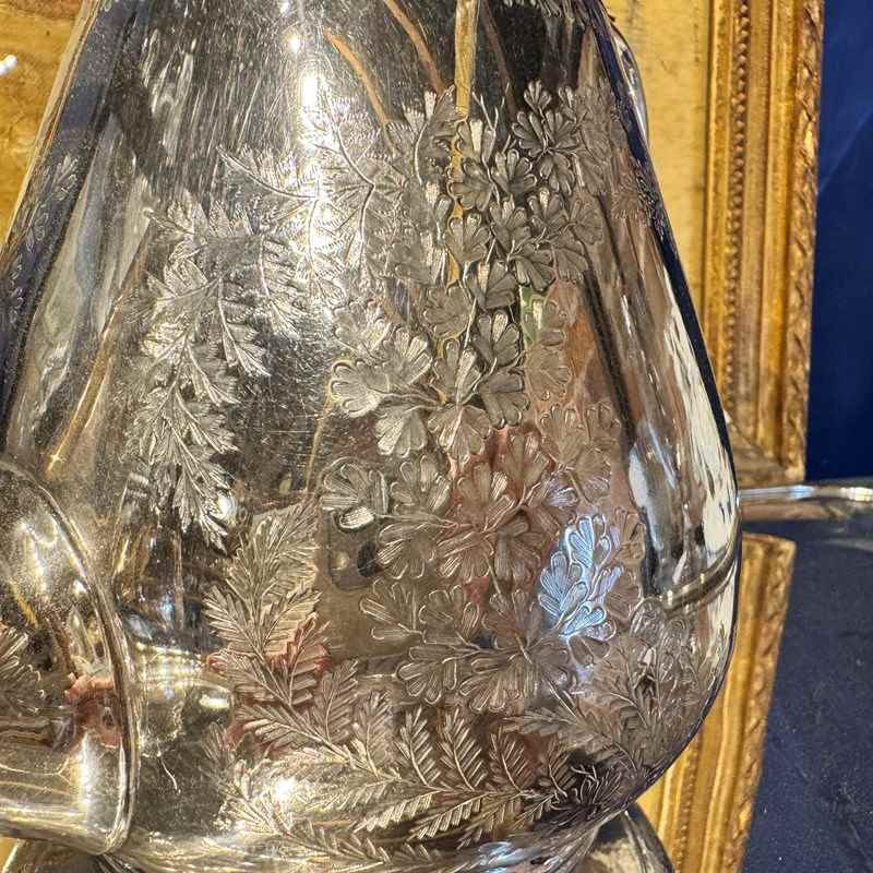 A wonderful quality 3 piece silver plated tea set with gilded interior to the milk jug and sugar bowl. The set comprises: a tea pot, milk jug and sugar bowl all decorated with a elaborate design a very typical piece of high Victoriana. They are all engraved with the letter 'G'