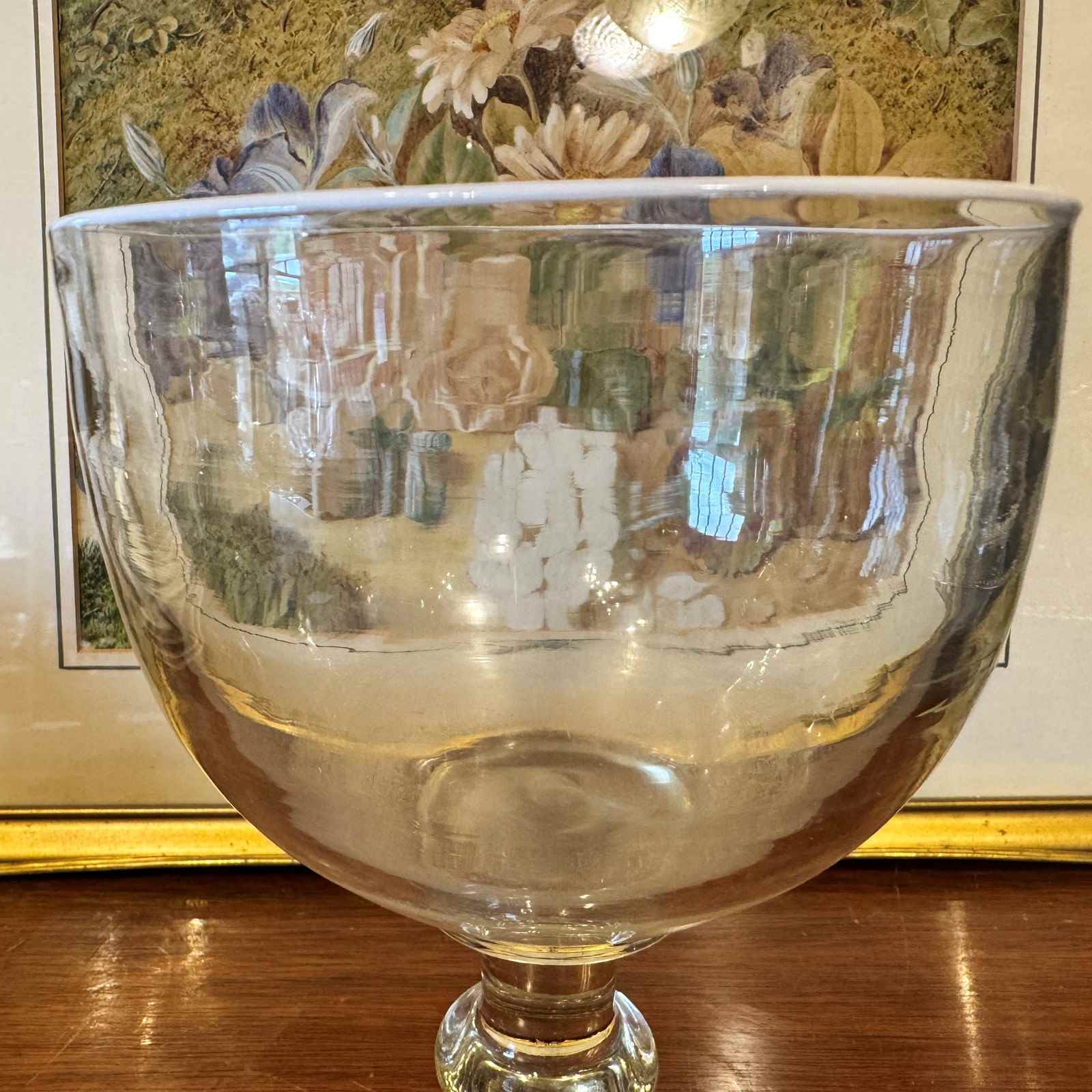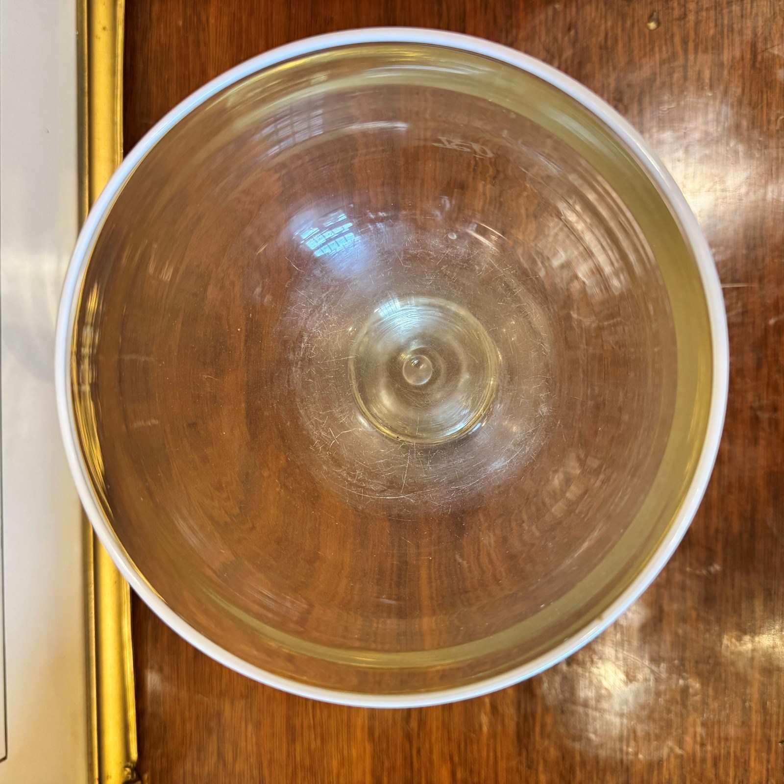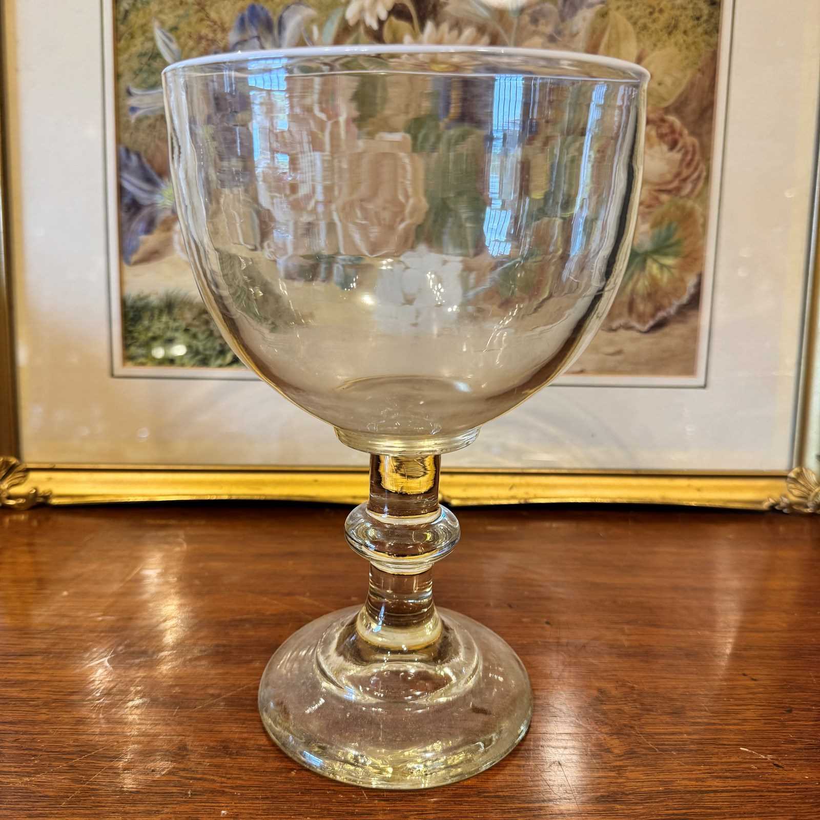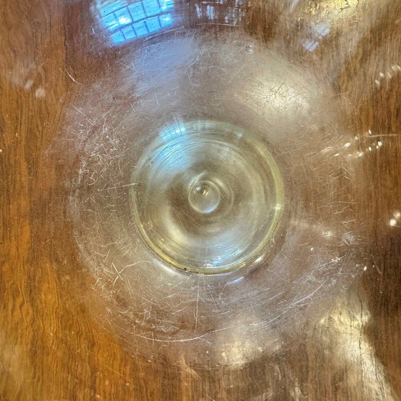 Condition is good, the glass is heavy. The interior of the bowl is marked from the contents being stirred.
