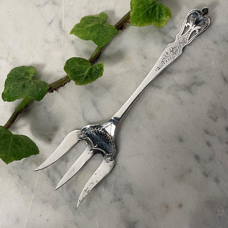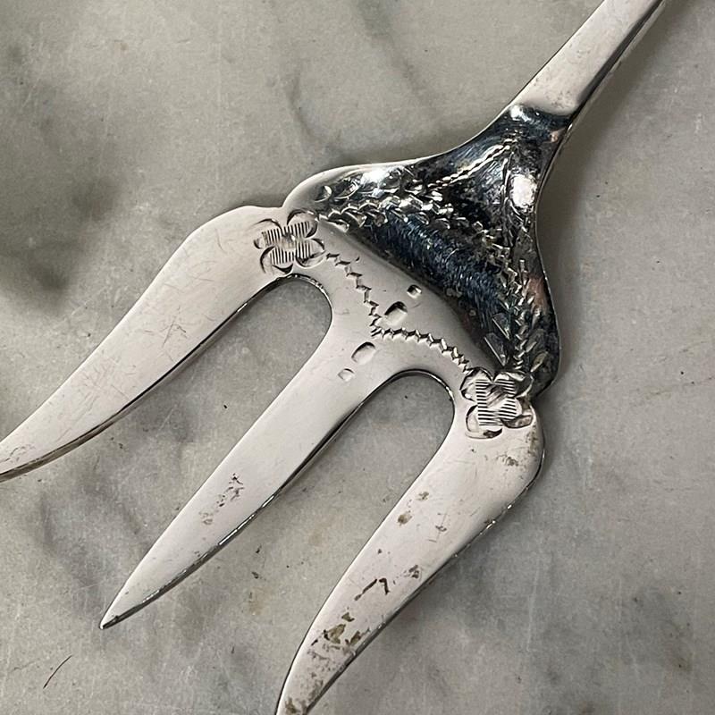 large Victorian silver plated serving fork perfect for serving charcuterie or bread.