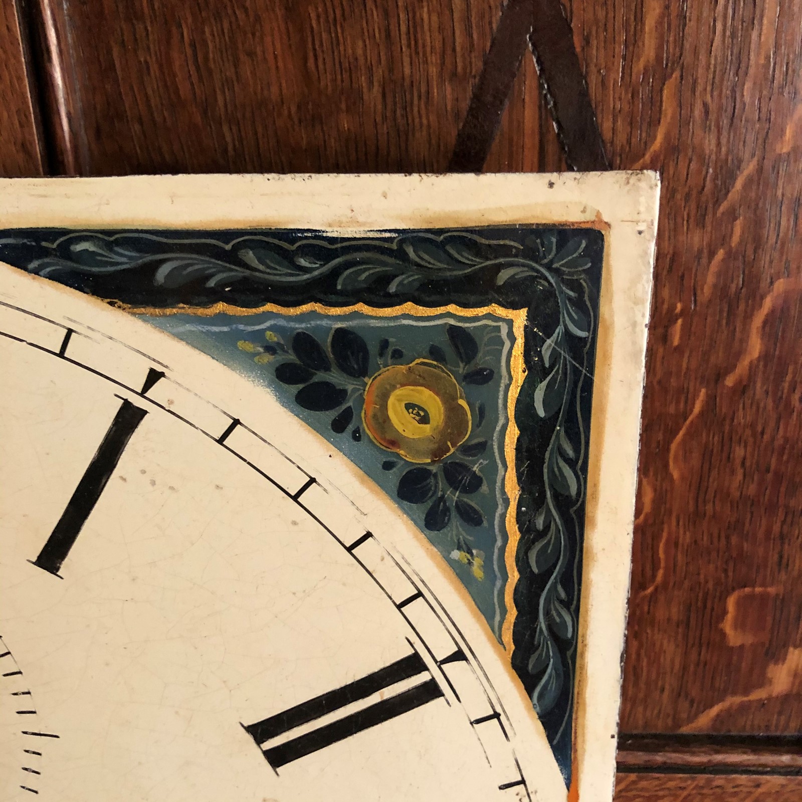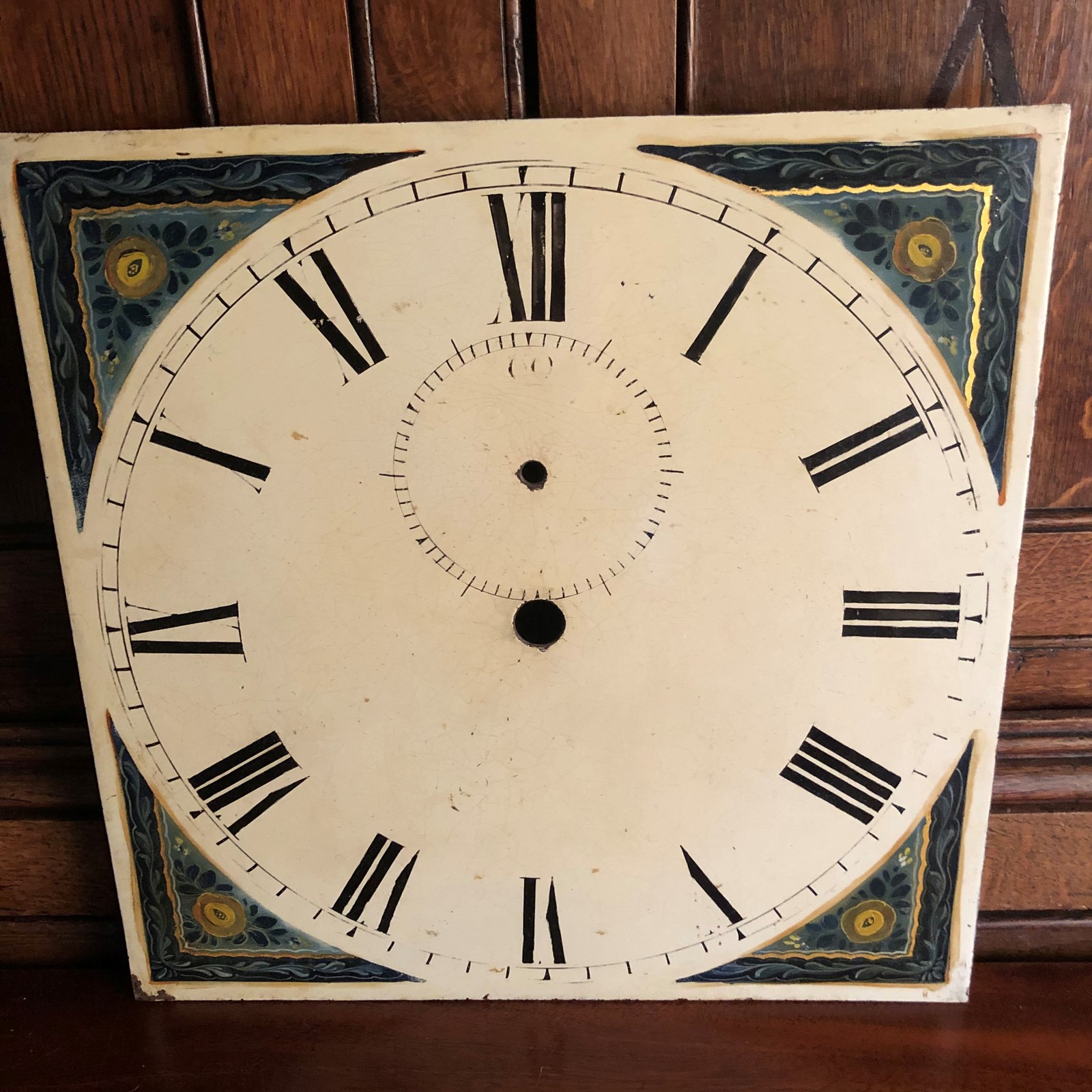 Square hand painted clock face in very good condition.