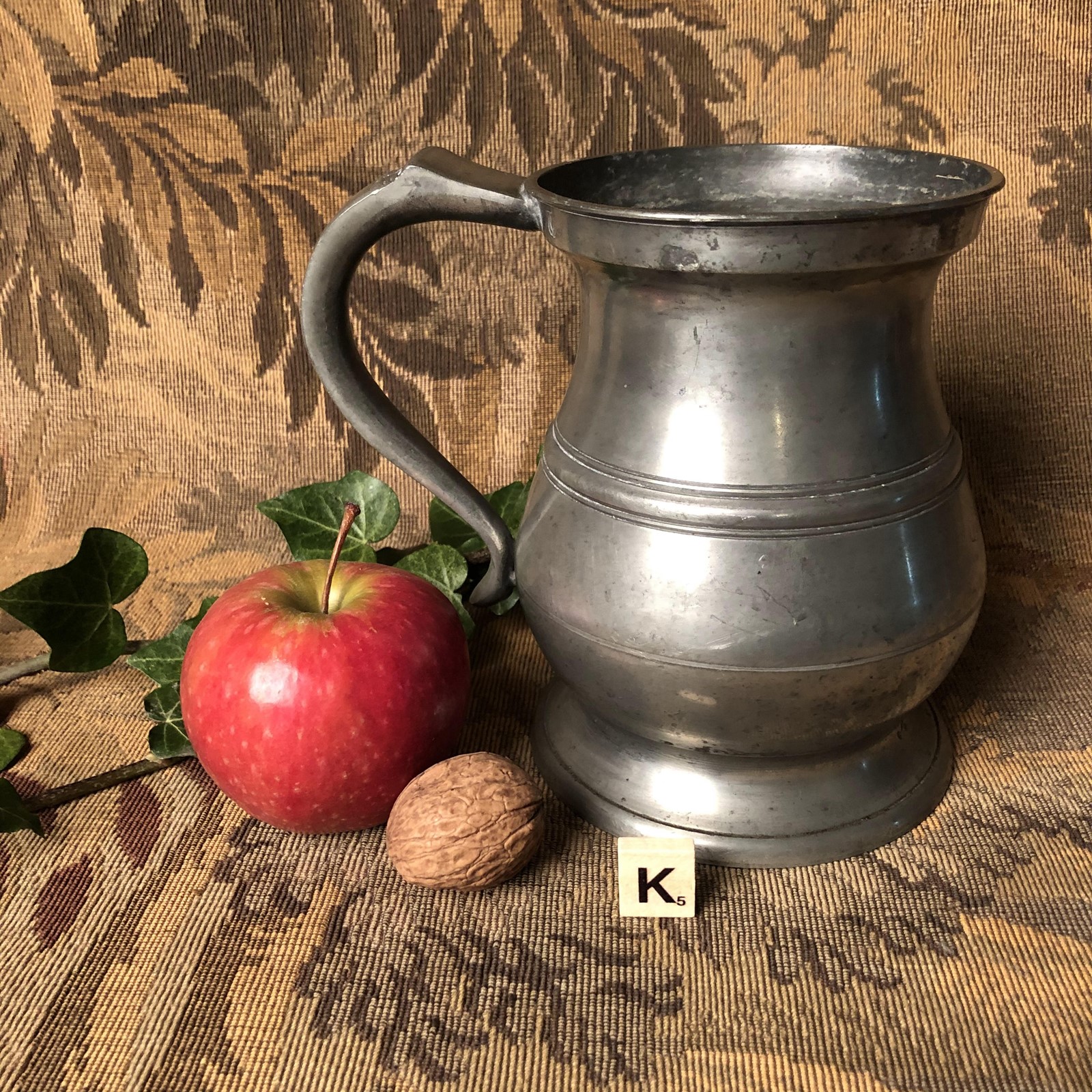 A large pewter tankard with a quart duty mark, from the middle of the 19th century. In good condition. Dimensions: 16cm high x 11cm wide