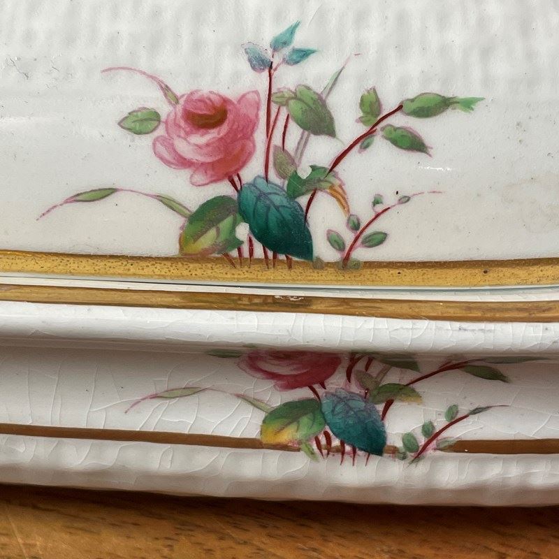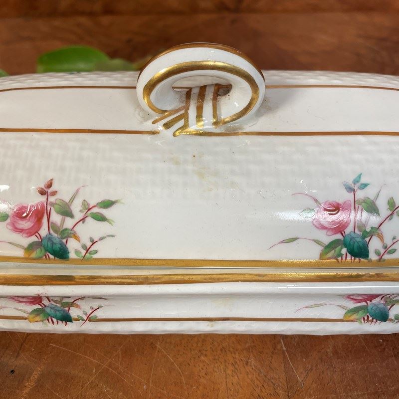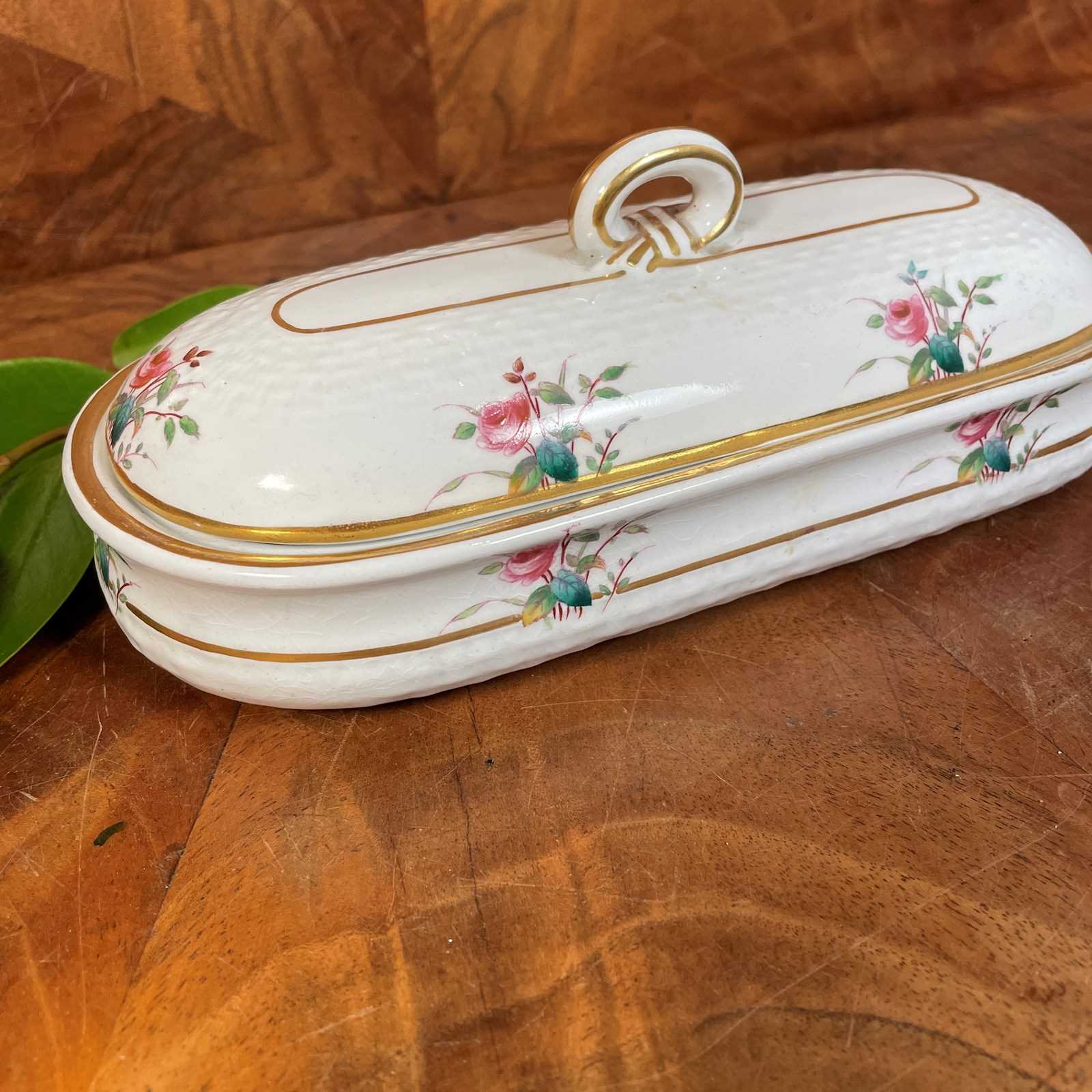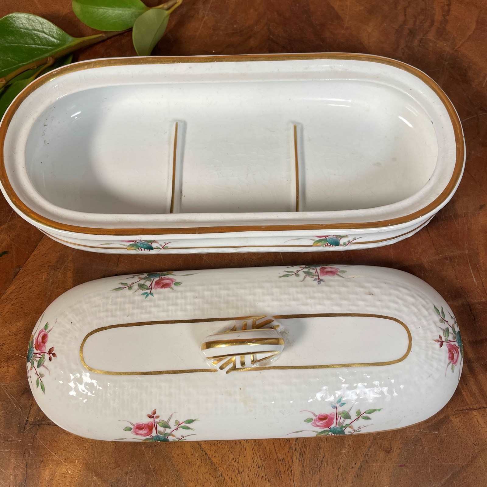 A fine quality Minton porcelain covered pot to hold a toothbrush, beautifully decorated with hand painted rose buds.