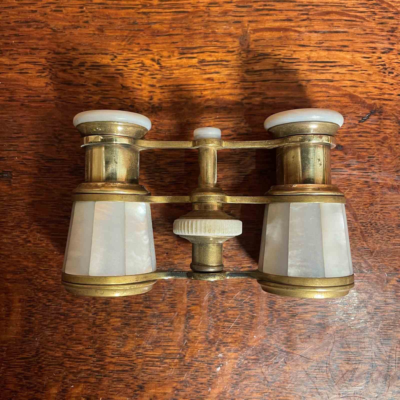 Mother of pearl opera glasses with gilded brass fittings, c1890.