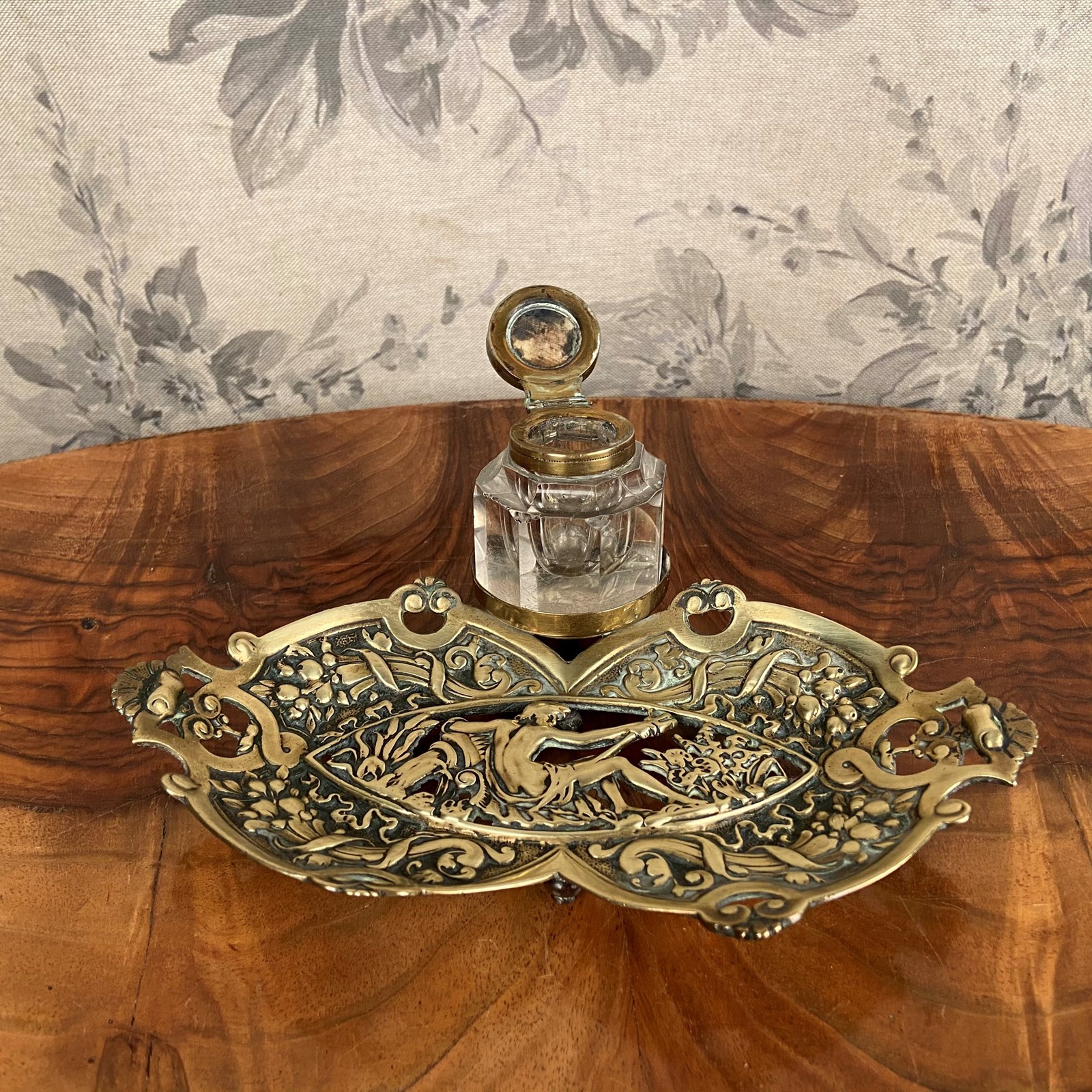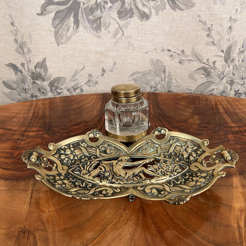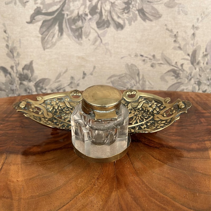 Ornate Victorian Brass Inkwell
