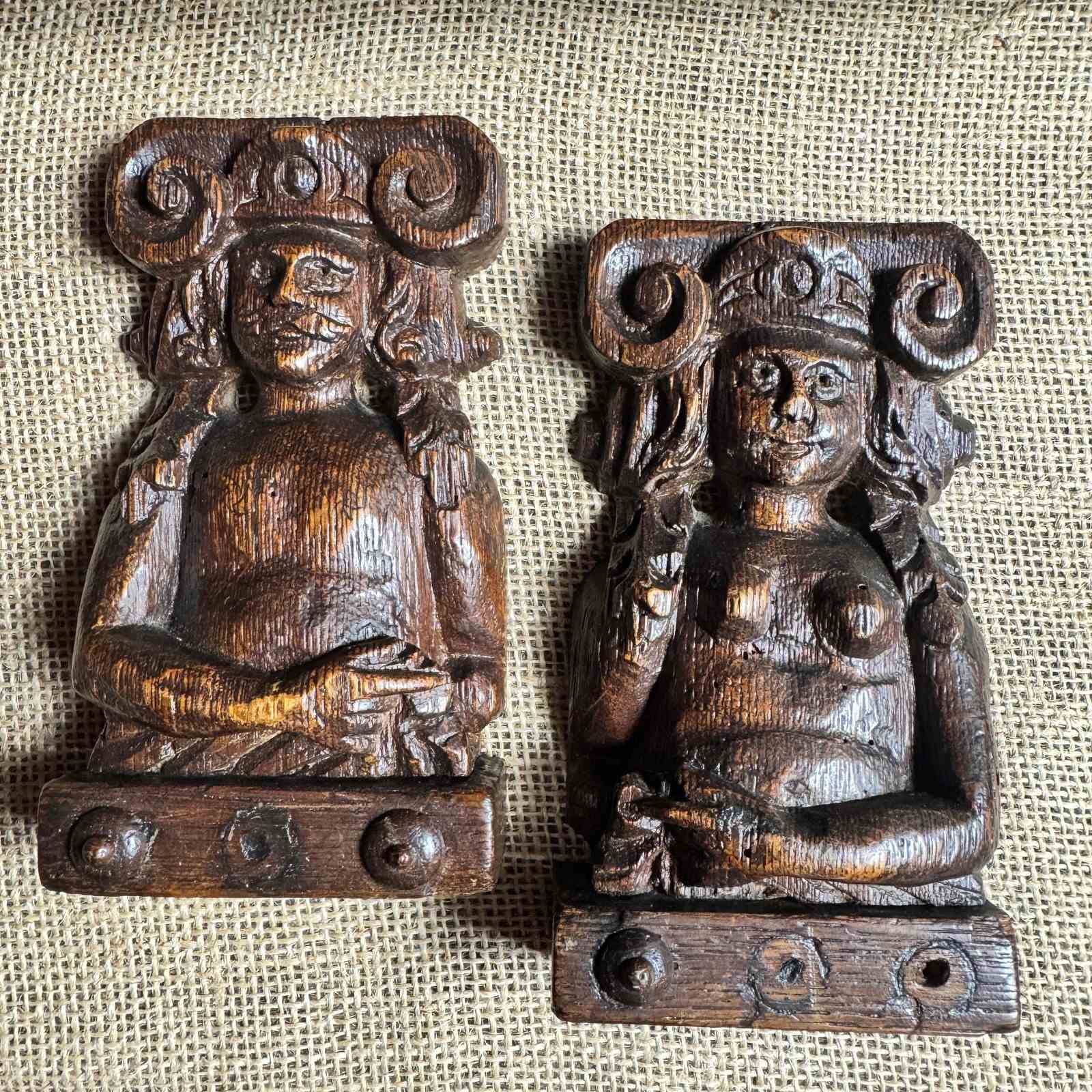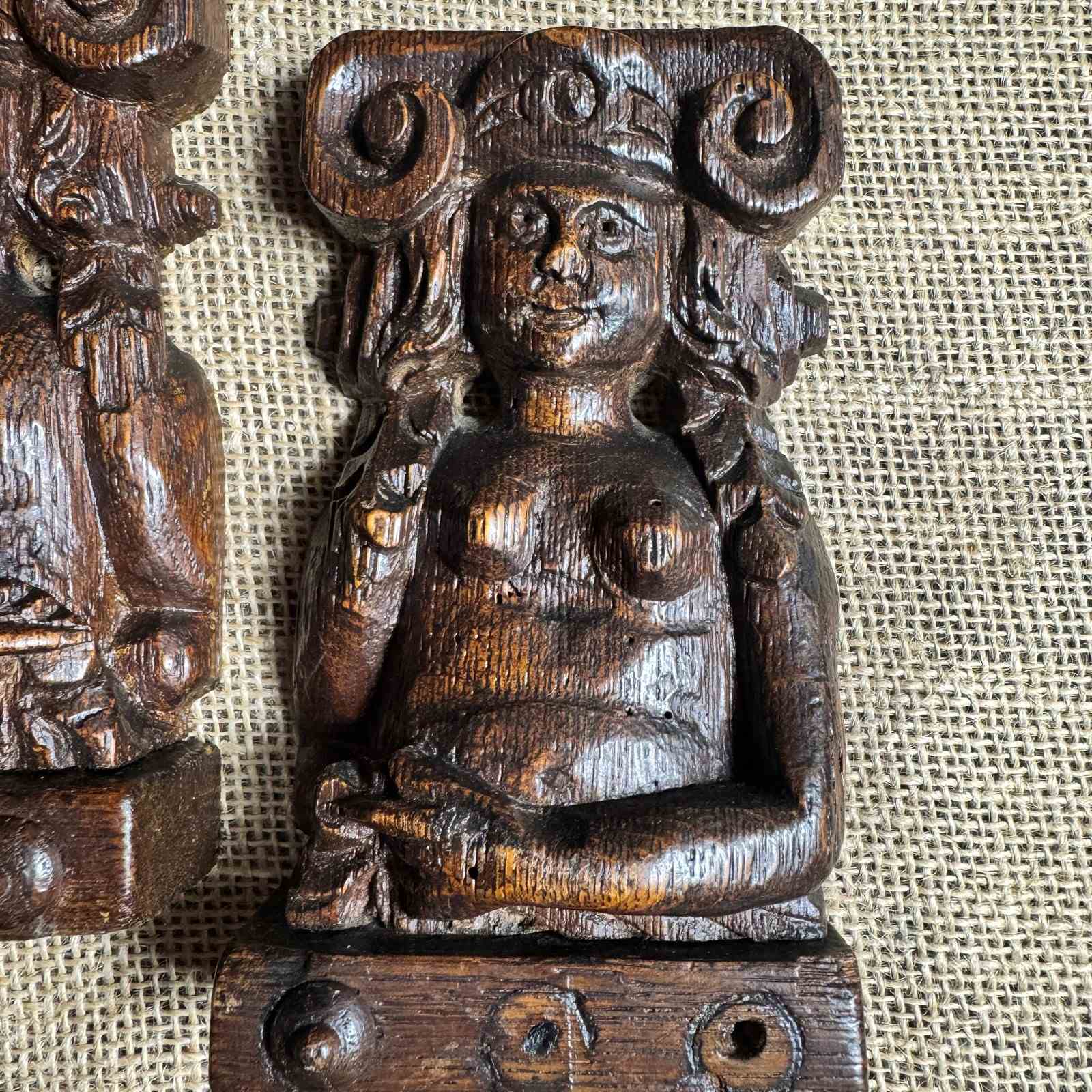 Pair of oak caryatids made in the Netherlands around the mid 18th century.