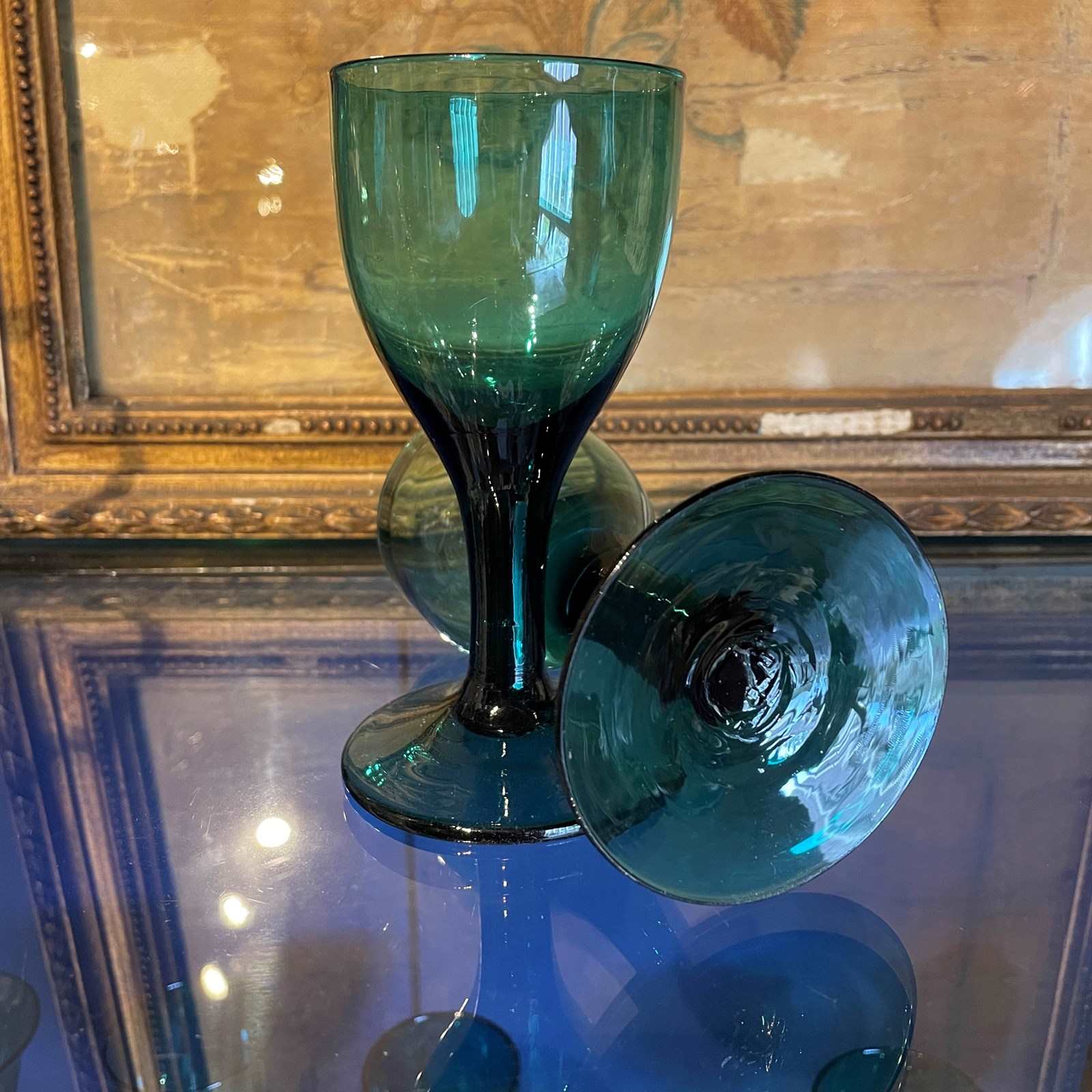 A pair of mid 19th century glasses, originally intended for wine. Today we would consider them too small for wine and would be more appropriate for port.