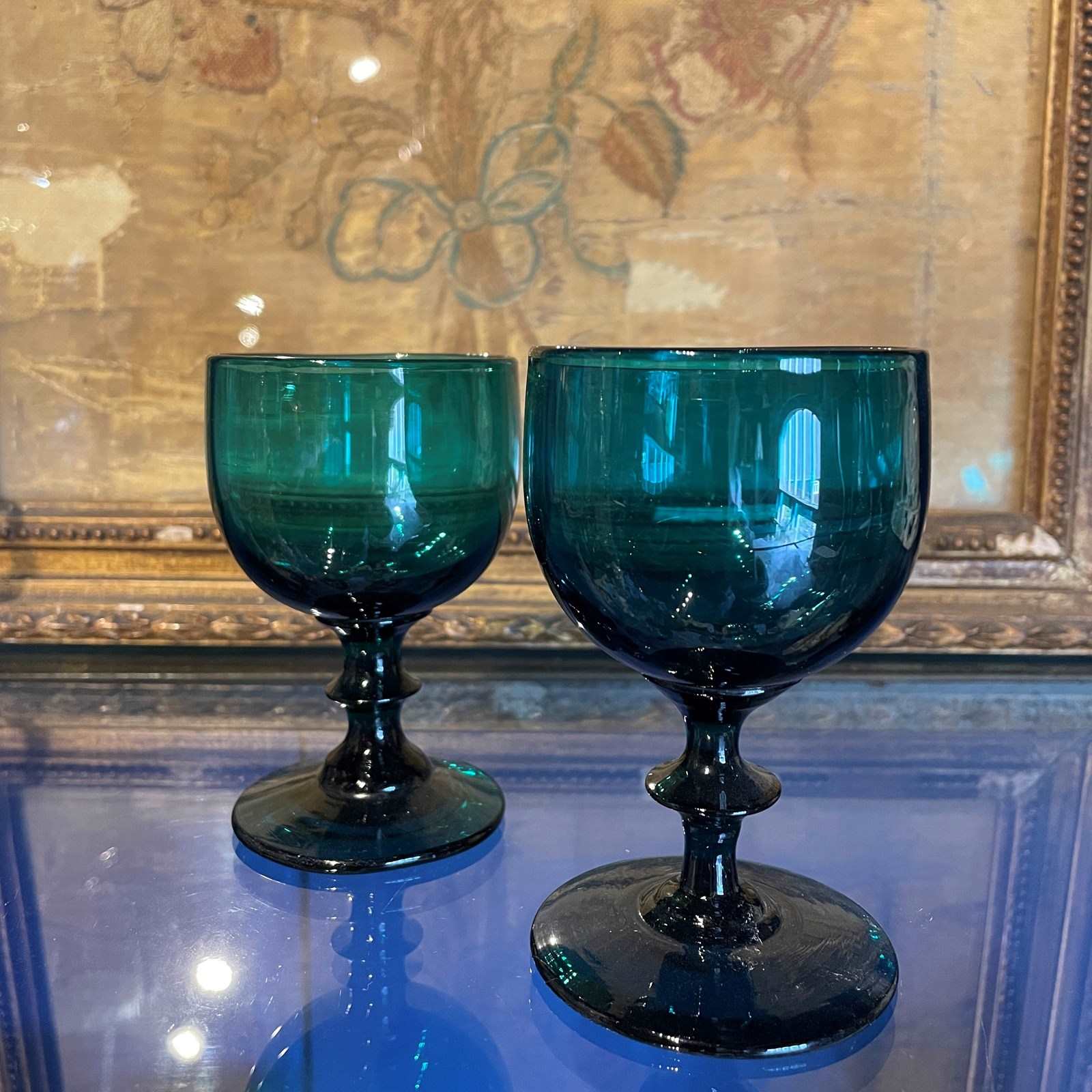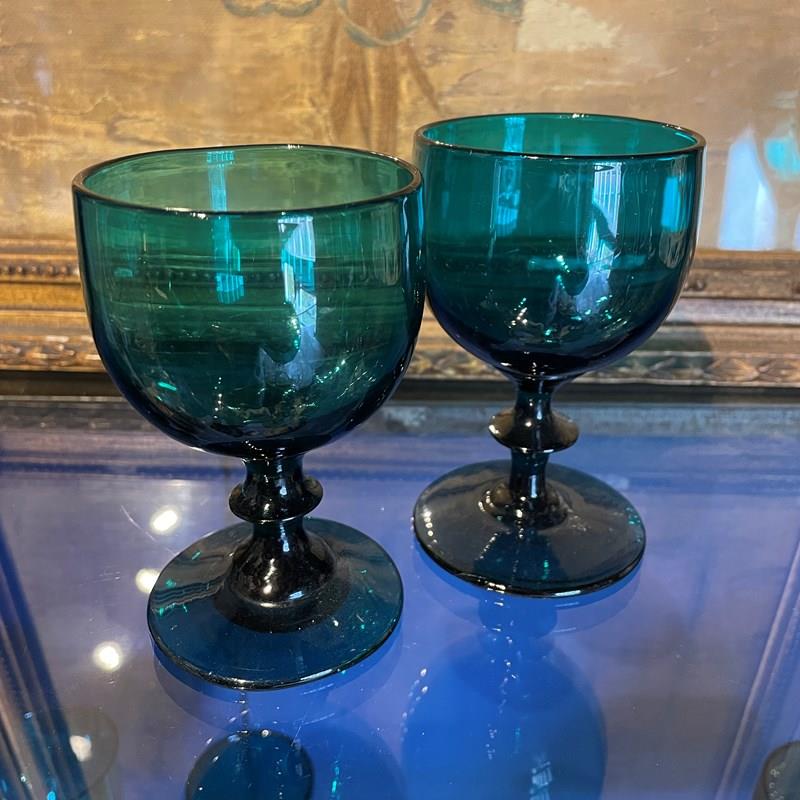 A pair of mid 19th century glasses, originally intended for wine. Today we would consider them too small for wine and would be more appropriate for port.
