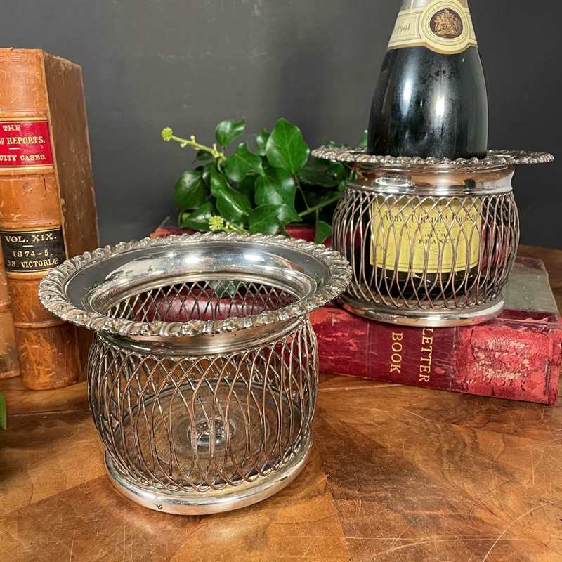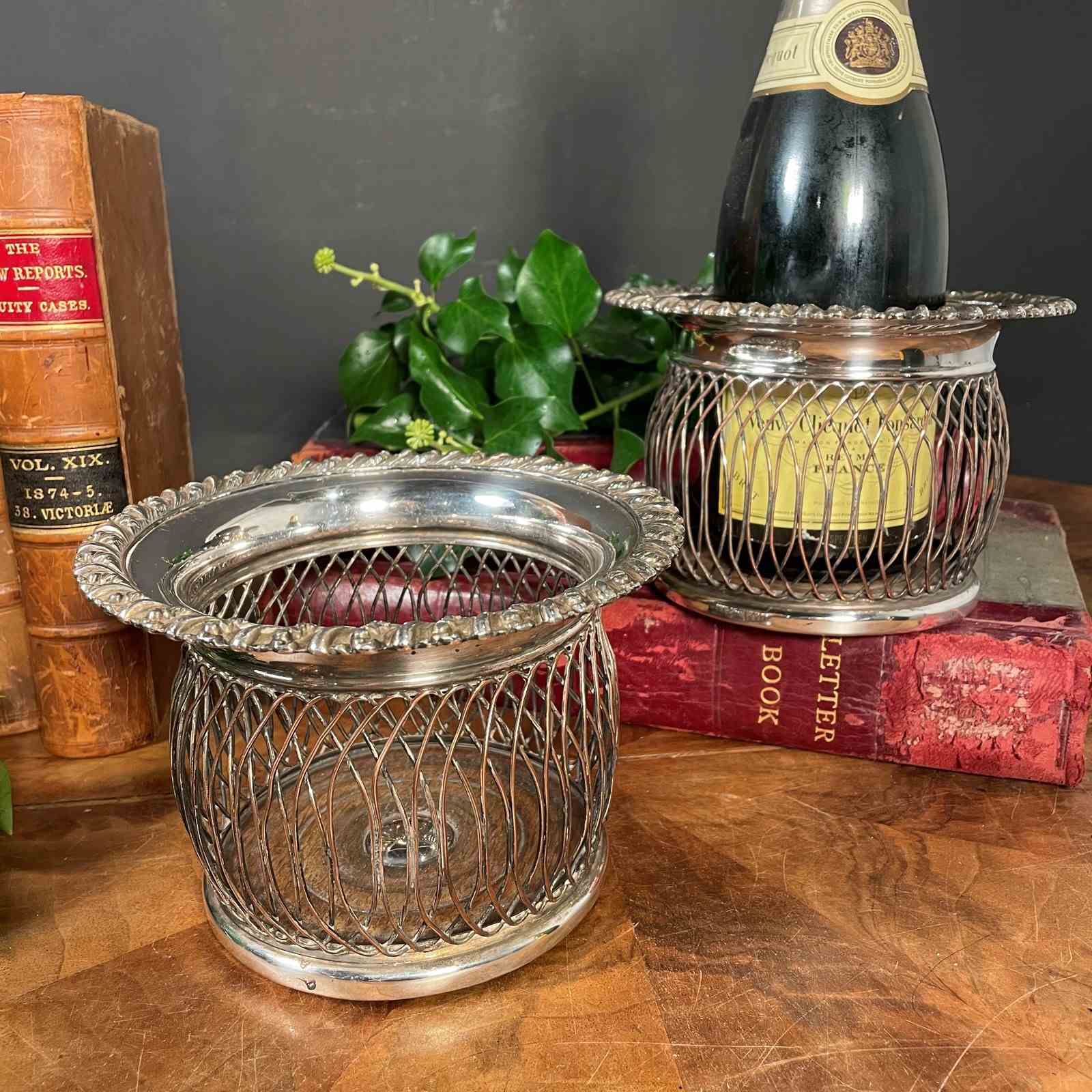 Rare Pair Of Large Old Sheffield Plate Bottle Coasters