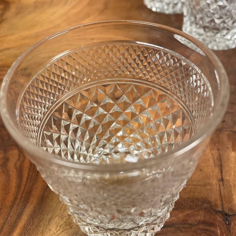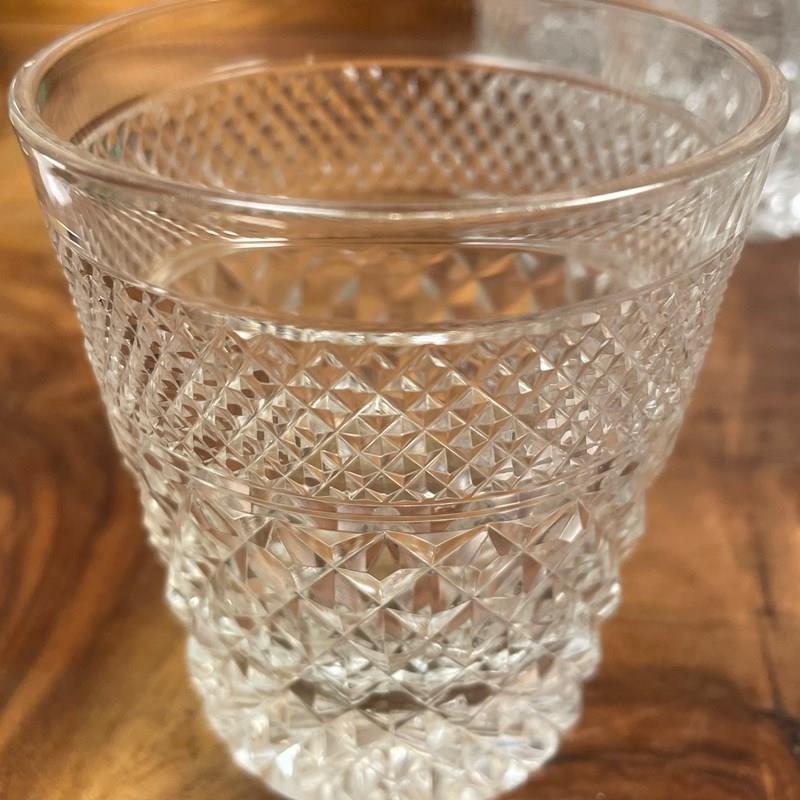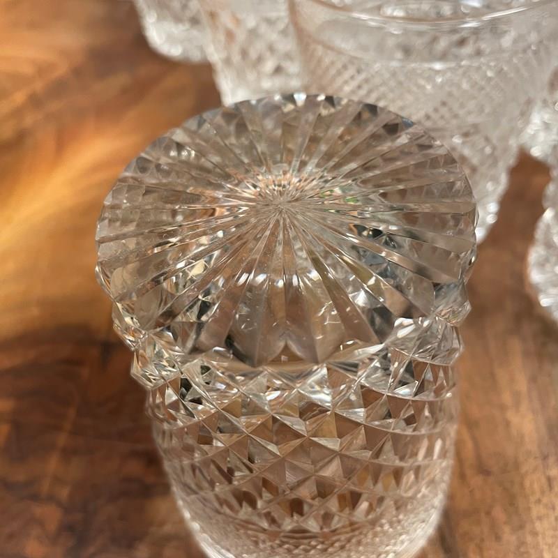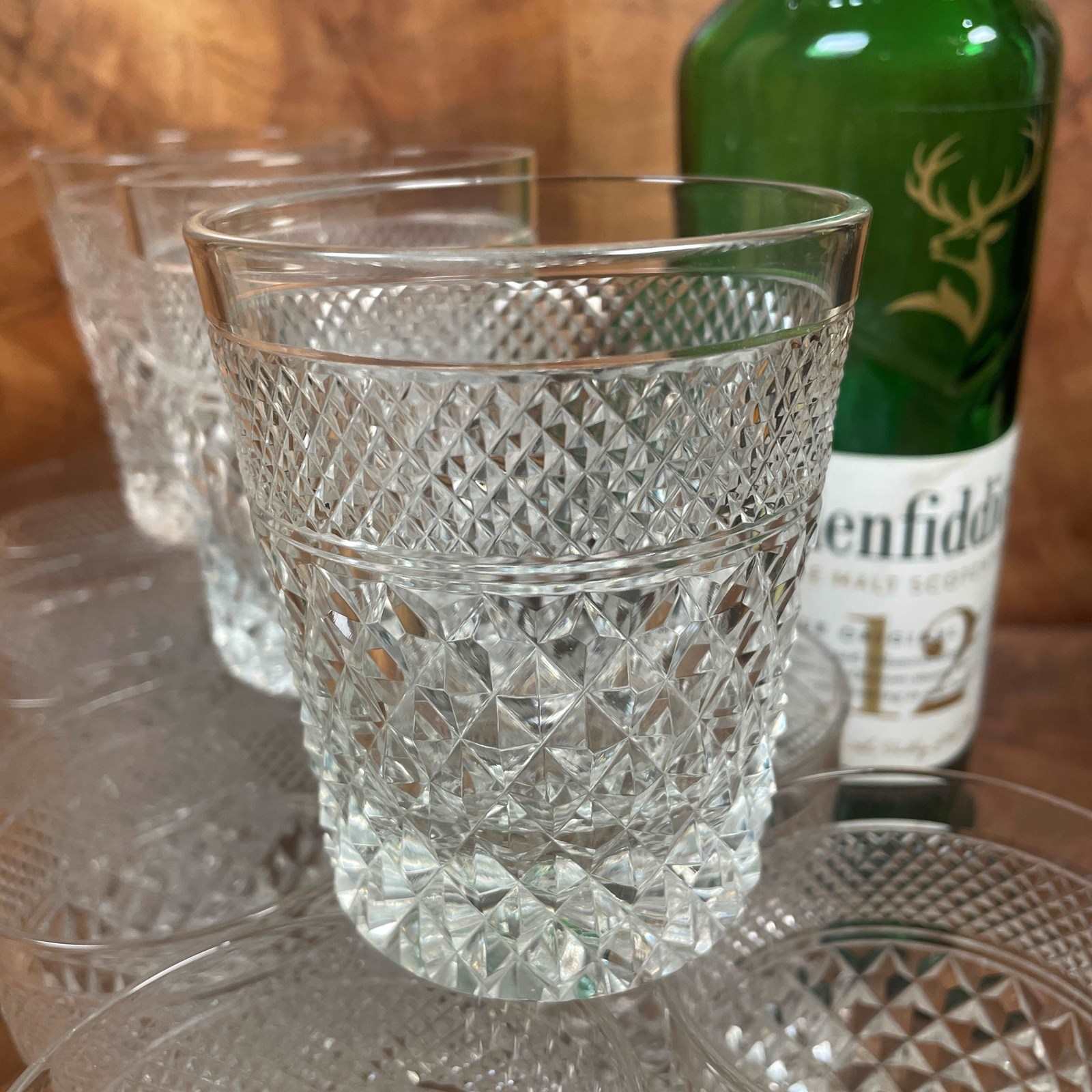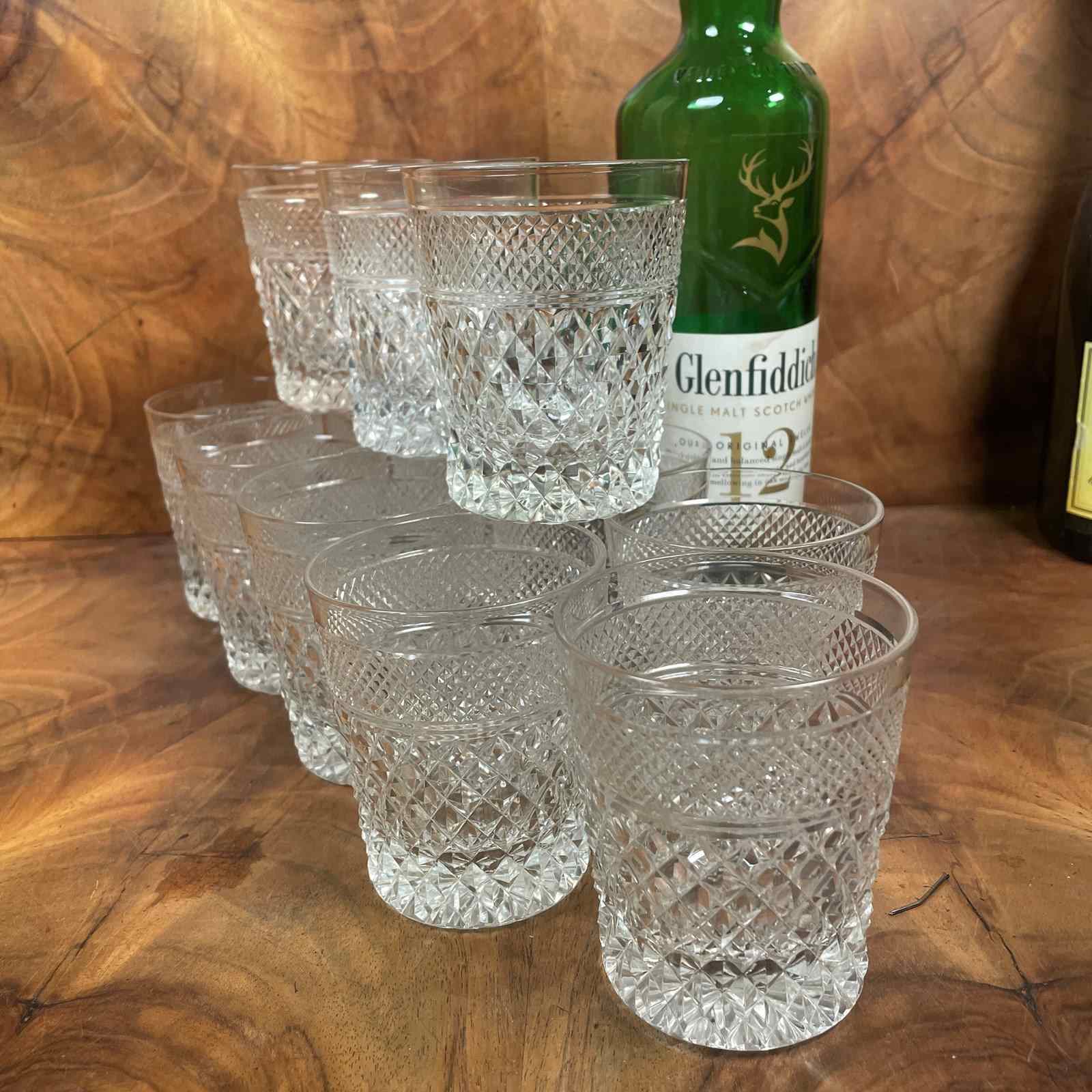 A really smart set of 12 whiskeys tumblers, each with a heavy star cut base.