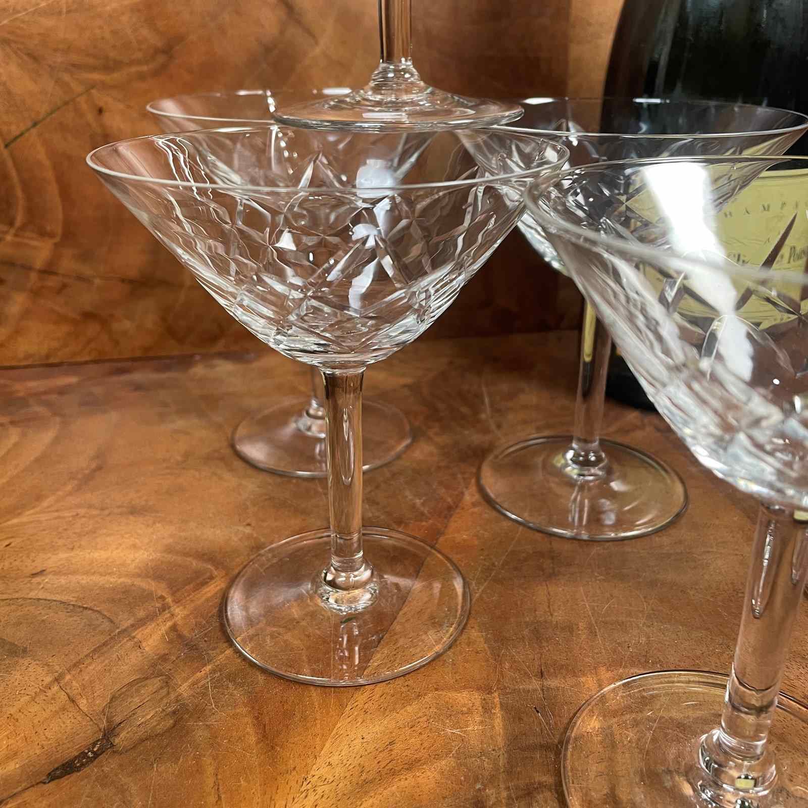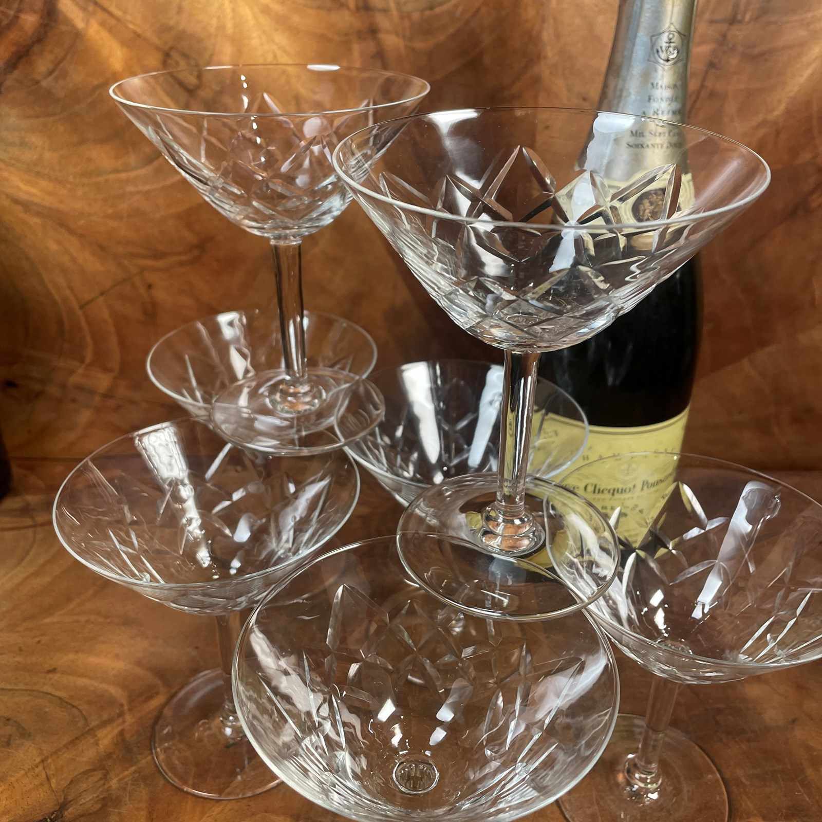 A very smart set of 7 (always good to have a spare) fine cut champagne coupes, French, c1930