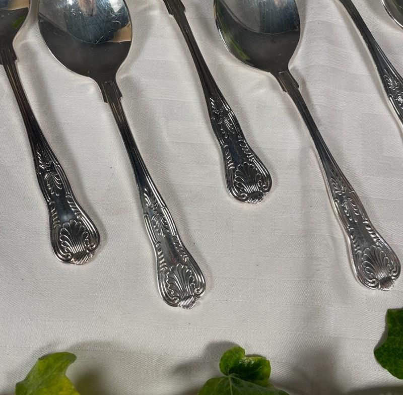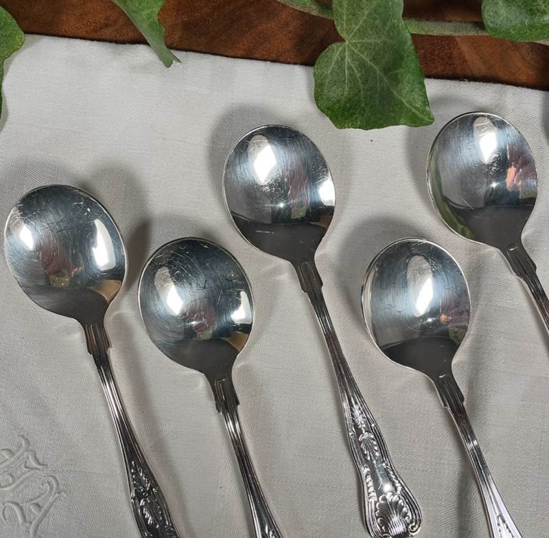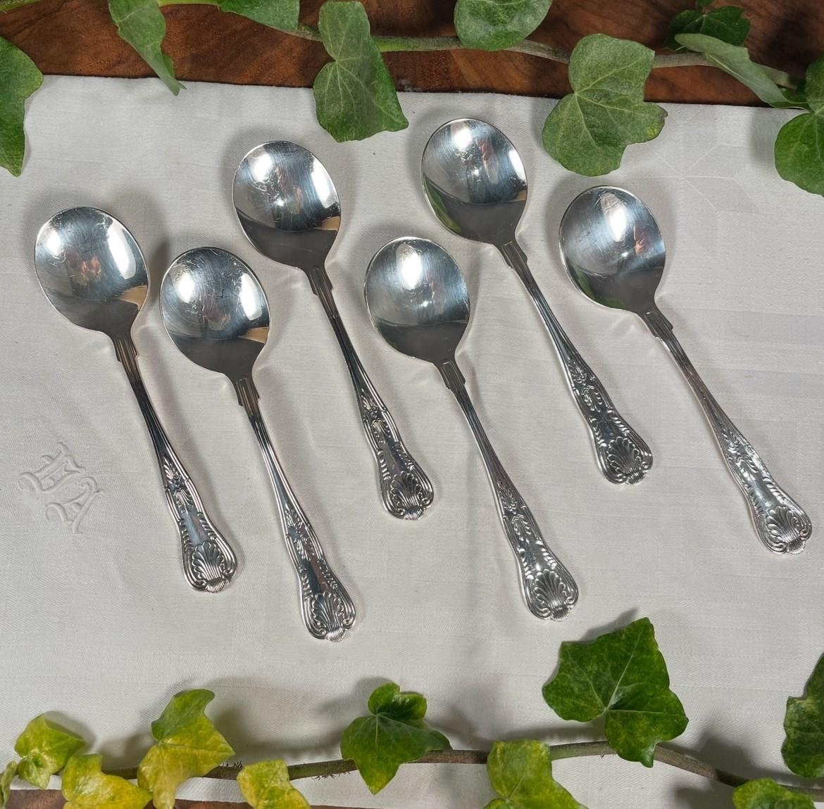 A set of 6 Kings pattern fruit spoons with silver plated handles and bowls.