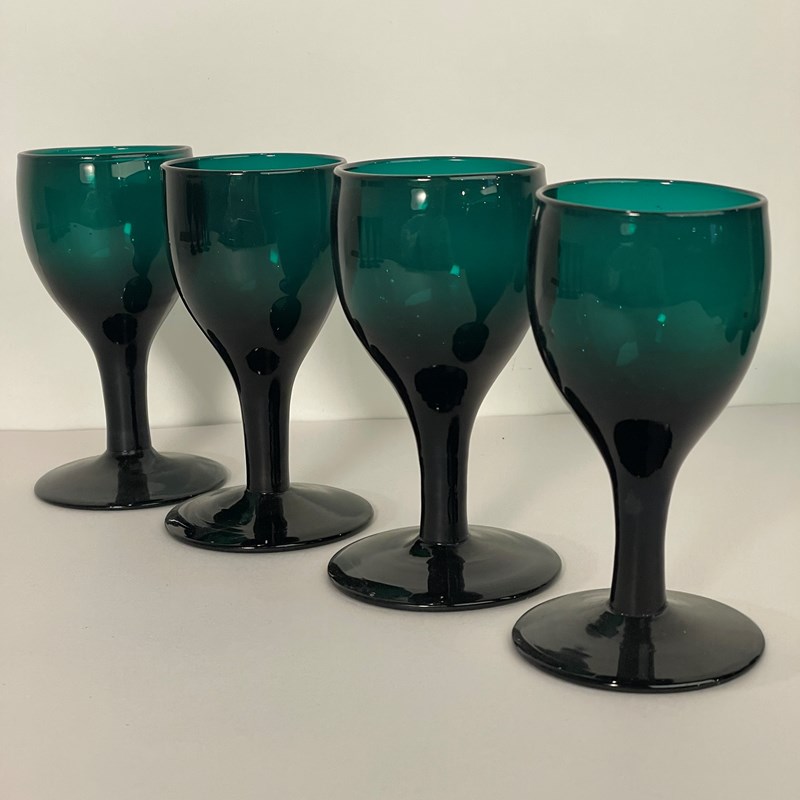 A set of 4 Victorian port glasses, each one hand blown with a polished pontil mark underneath the foot.