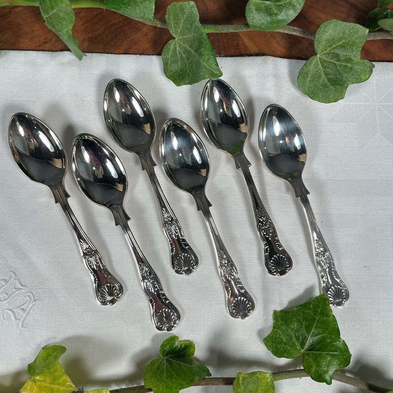 A set of 6 Kings pattern tea spoons with silver plated handles and bowls.
