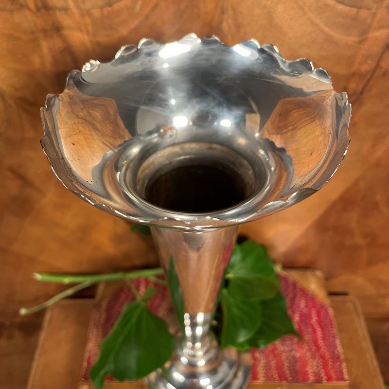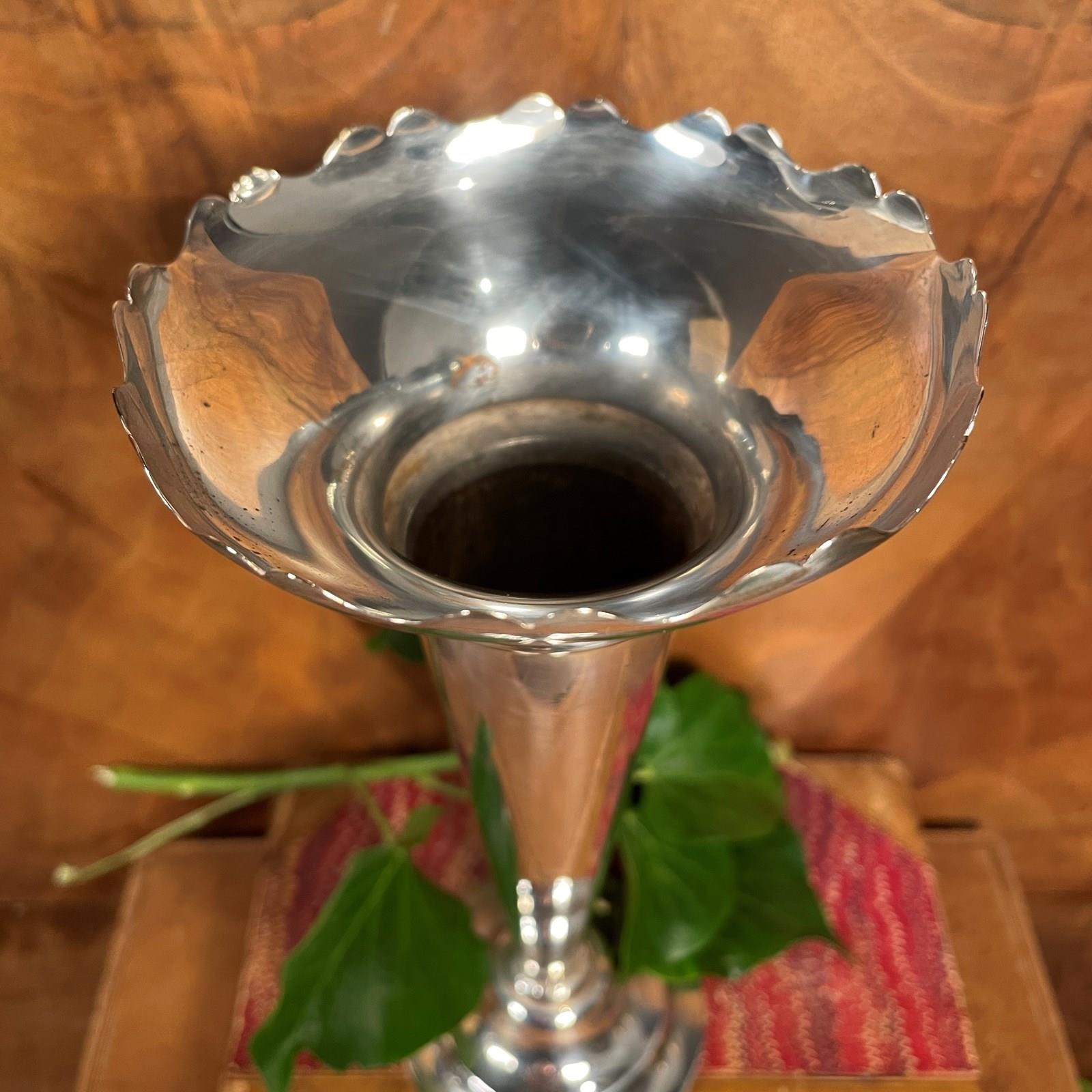 Silver plated vase perfect for holding a single rose. It has a tapered body and fluted top.