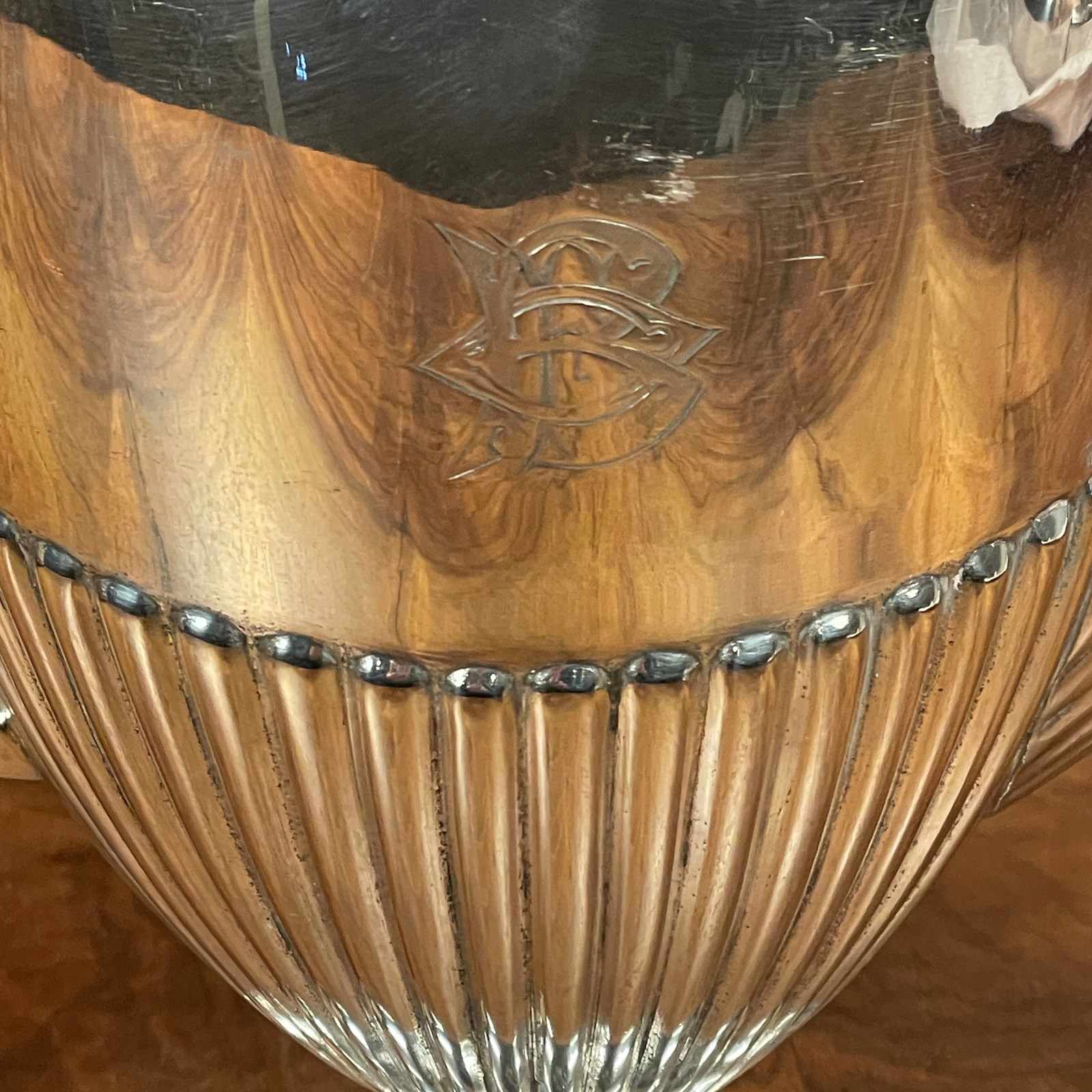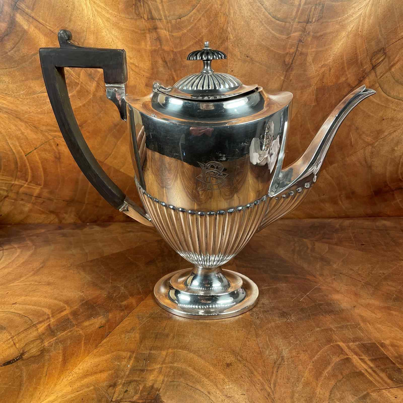 Victorian silver plated coffee pot with monogrammed cartouche.